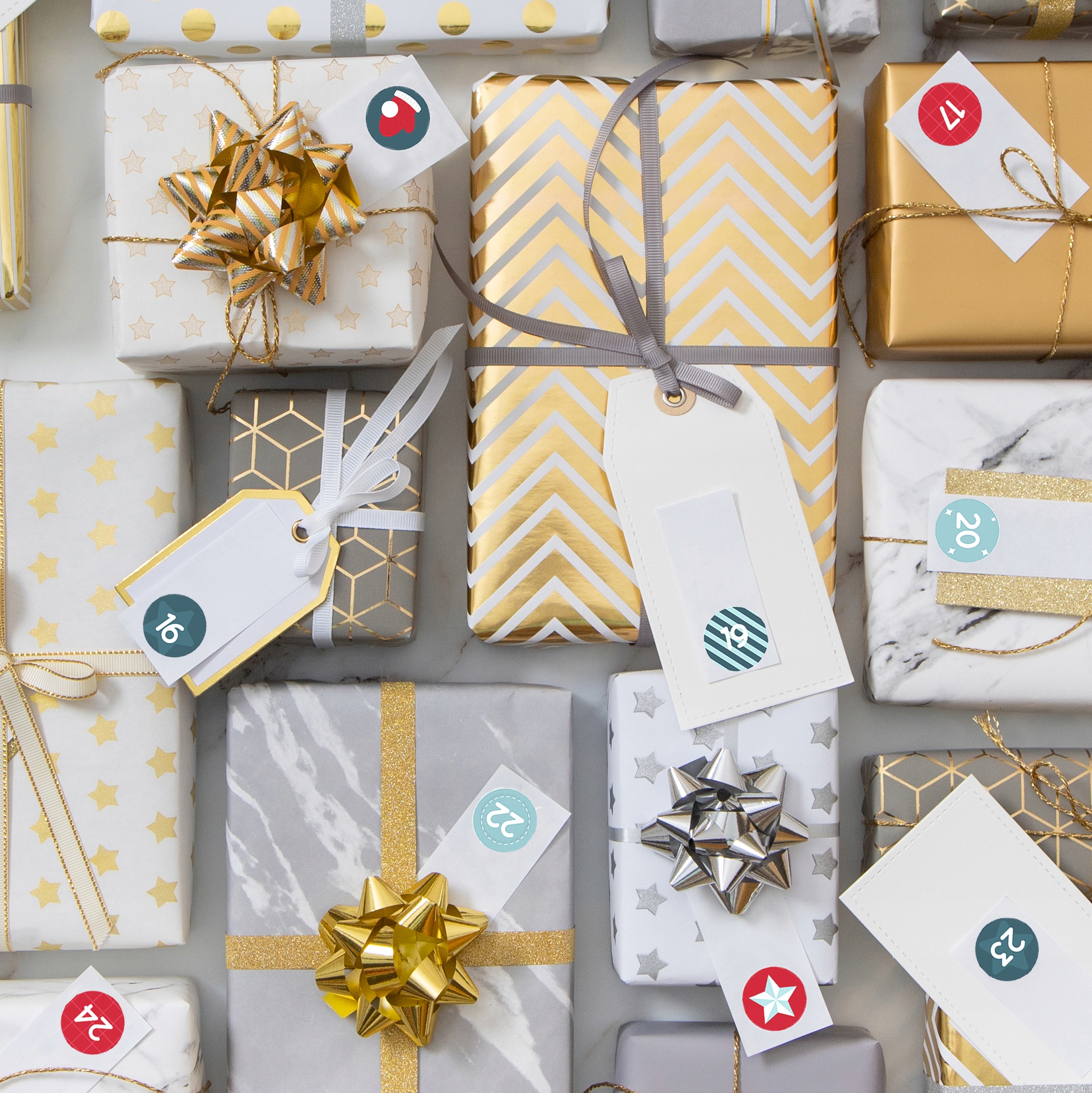 Каждая наклейка имеет свой рождественский мотив. На некоторых наклейках есть цифры, которыми можно отметить следующие дни Адвента. В набор также входит несколько наклеек с рождественским мотивом, которые можно использовать для календаря или в качестве украшения подарков или рождественских открыток. Различные узоры и форматы наклеек на выбор. Квадратные наклейки размером 3,5 см х 3,5 см и круглые наклейки диаметром 3,5 см.