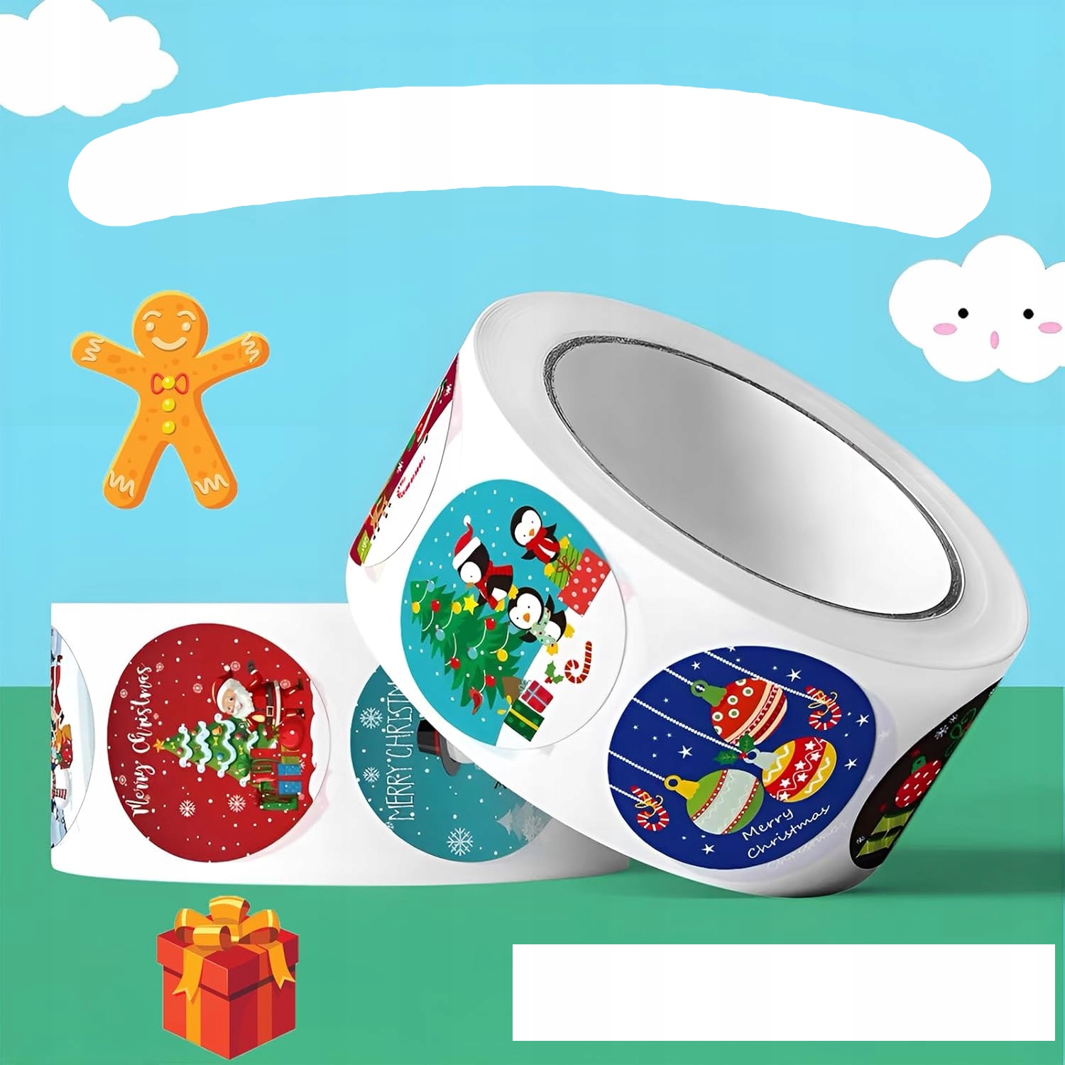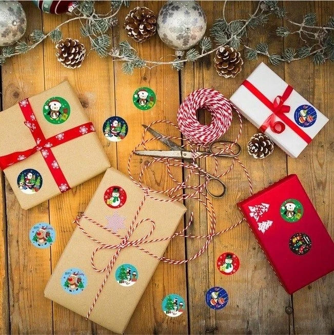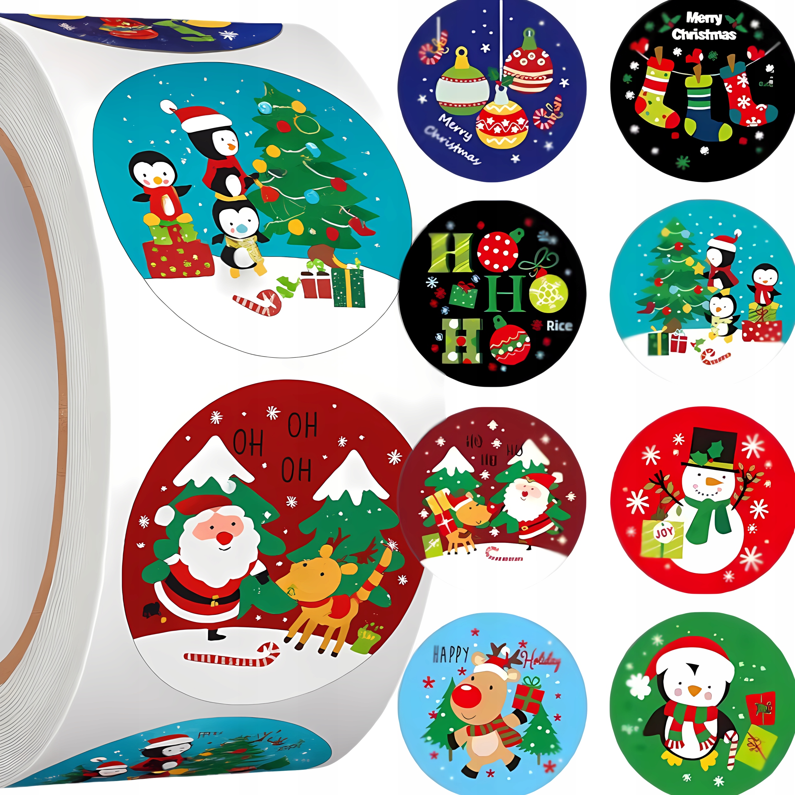 РОЖДЕСТВЕНСКИЕ НАКЛЕЙКИ ДЛЯ ПОДАРКОВ ДЕКОРАТИВНАЯ УПАКОВКА РОЖДЕСТВЕНСКИЕ КРУГЛЫЕ РУЛЕТЫ 500 шт.