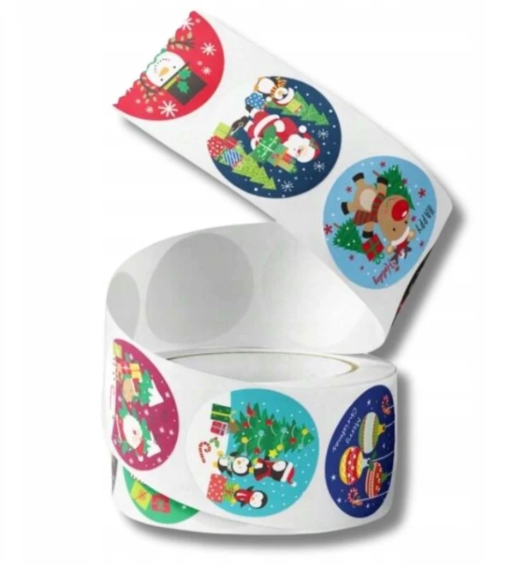 РОЖДЕСТВЕНСКИЕ НАКЛЕЙКИ ДЛЯ ПОДАРКОВ ДЕКОРАТИВНАЯ УПАКОВКА РОЖДЕСТВЕНСКИЙ КРУГЛЫЙ РУЛОН 500 шт.