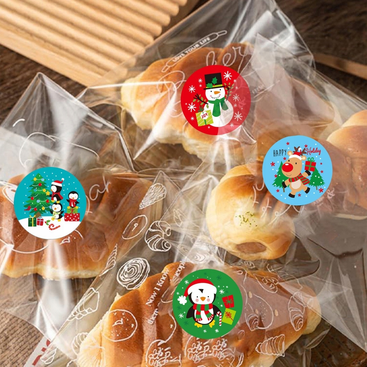 Самоклеящаяся поверхность облегчает быстрое снятие и нанесение, а стойкий принт сохраняет цвета даже при длительном хранении. В рулоне до 500 штук различного рисунка, что позволяет использовать их как для упаковки единичных подарков, так и для более крупной, рождественской продукции в компании или студия рукоделия.