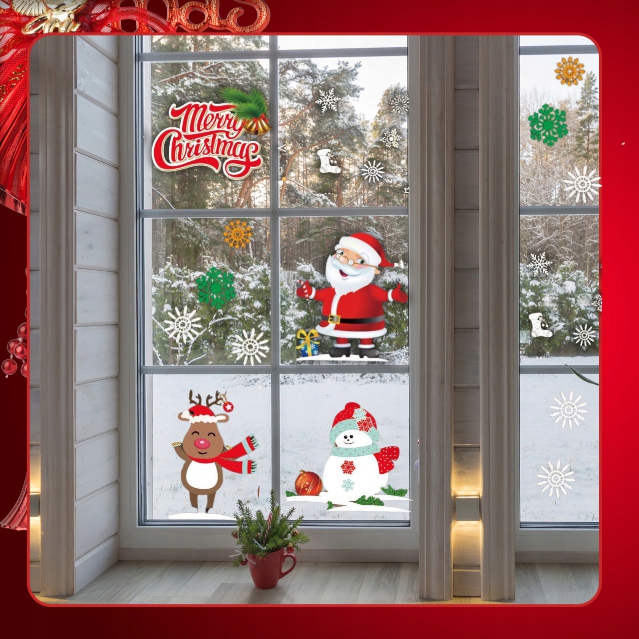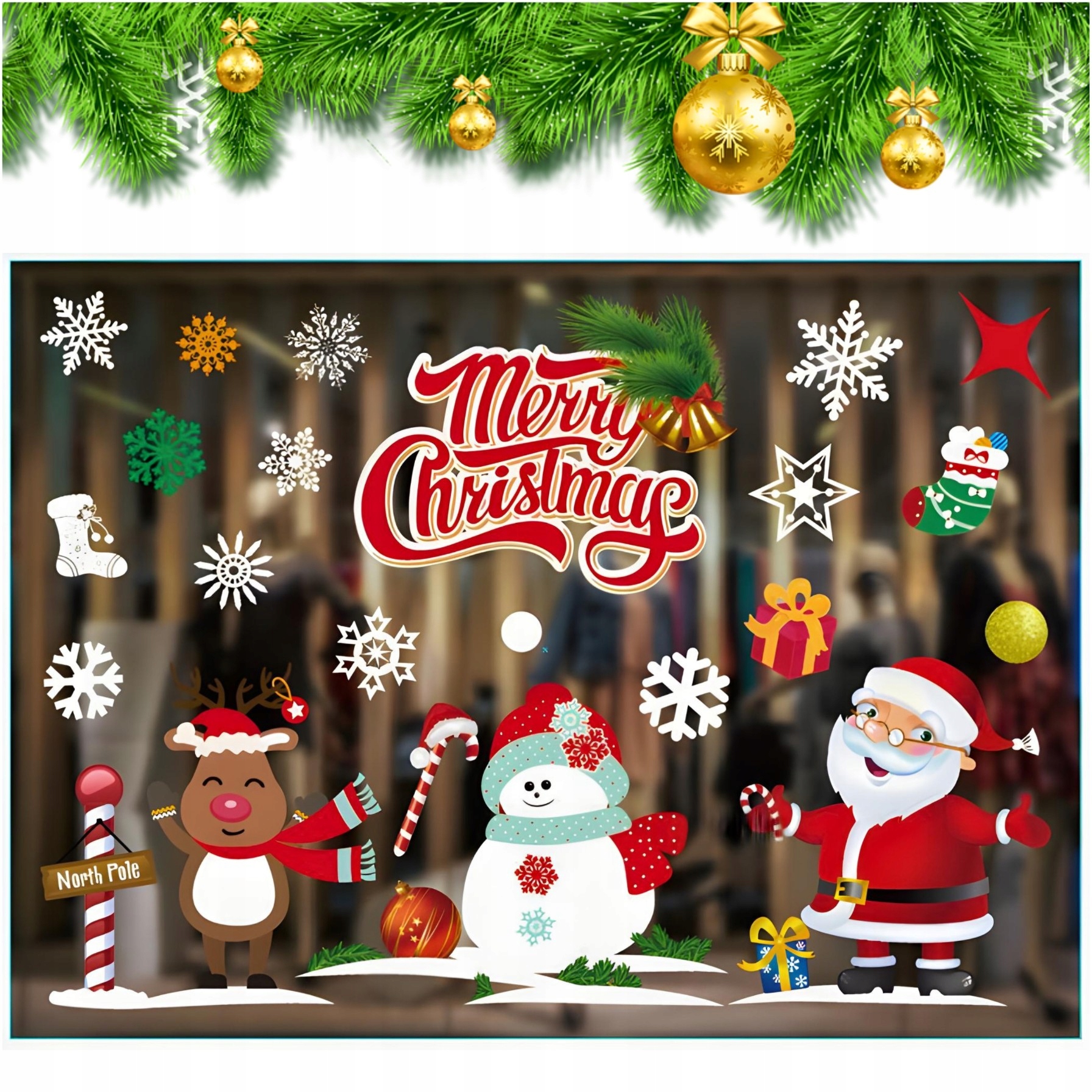 РОЖДЕСТВЕНСКИЕ НАКЛЕЙКИ НА ОКНА УКРАШЕНИЯ ОКНА РОЖДЕСТВЕНСКИЕ СНЕЖИНКИ ПОДАРОК САНТА