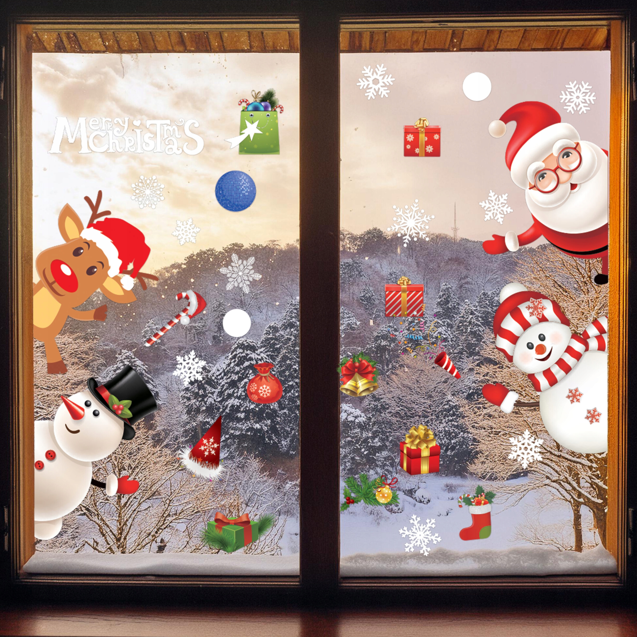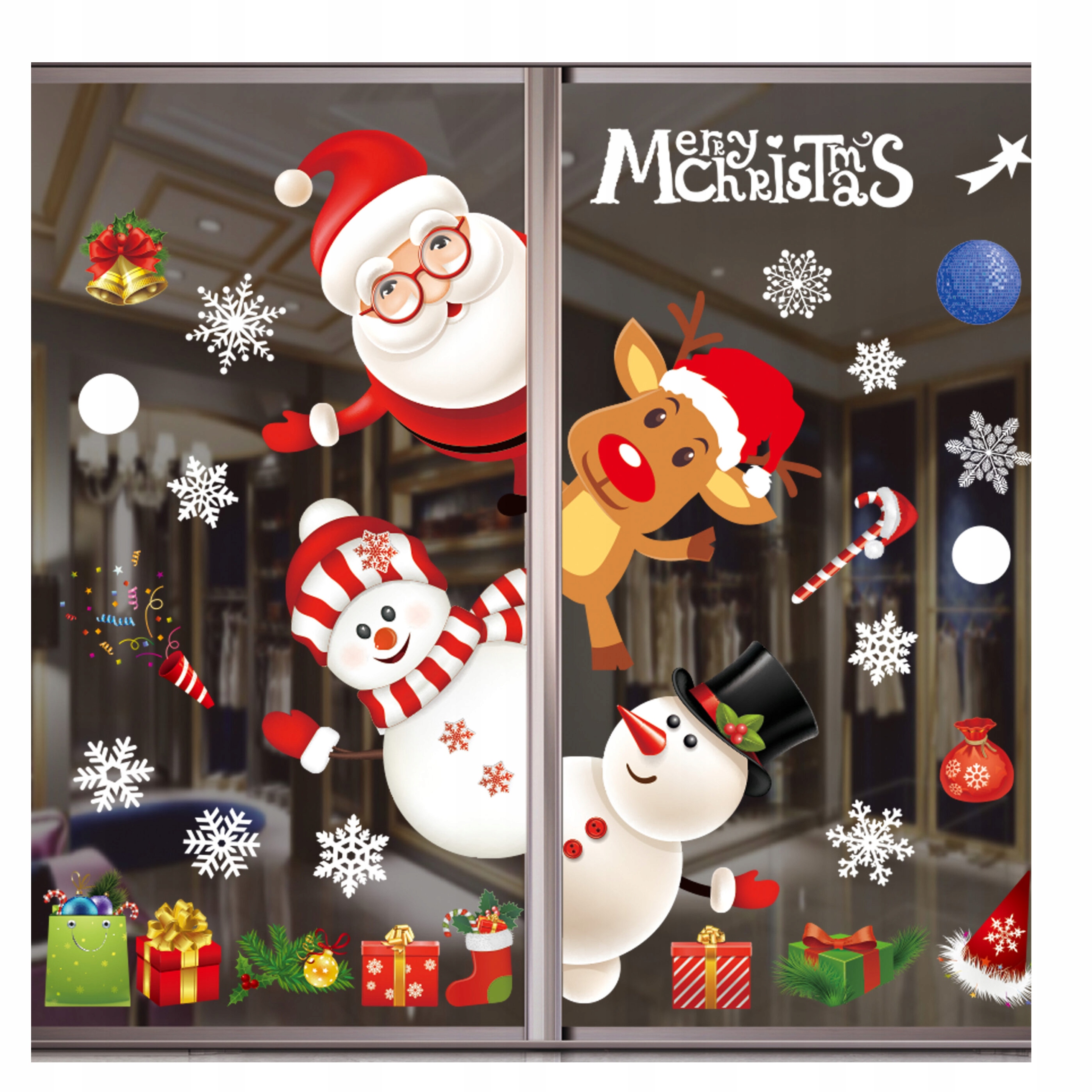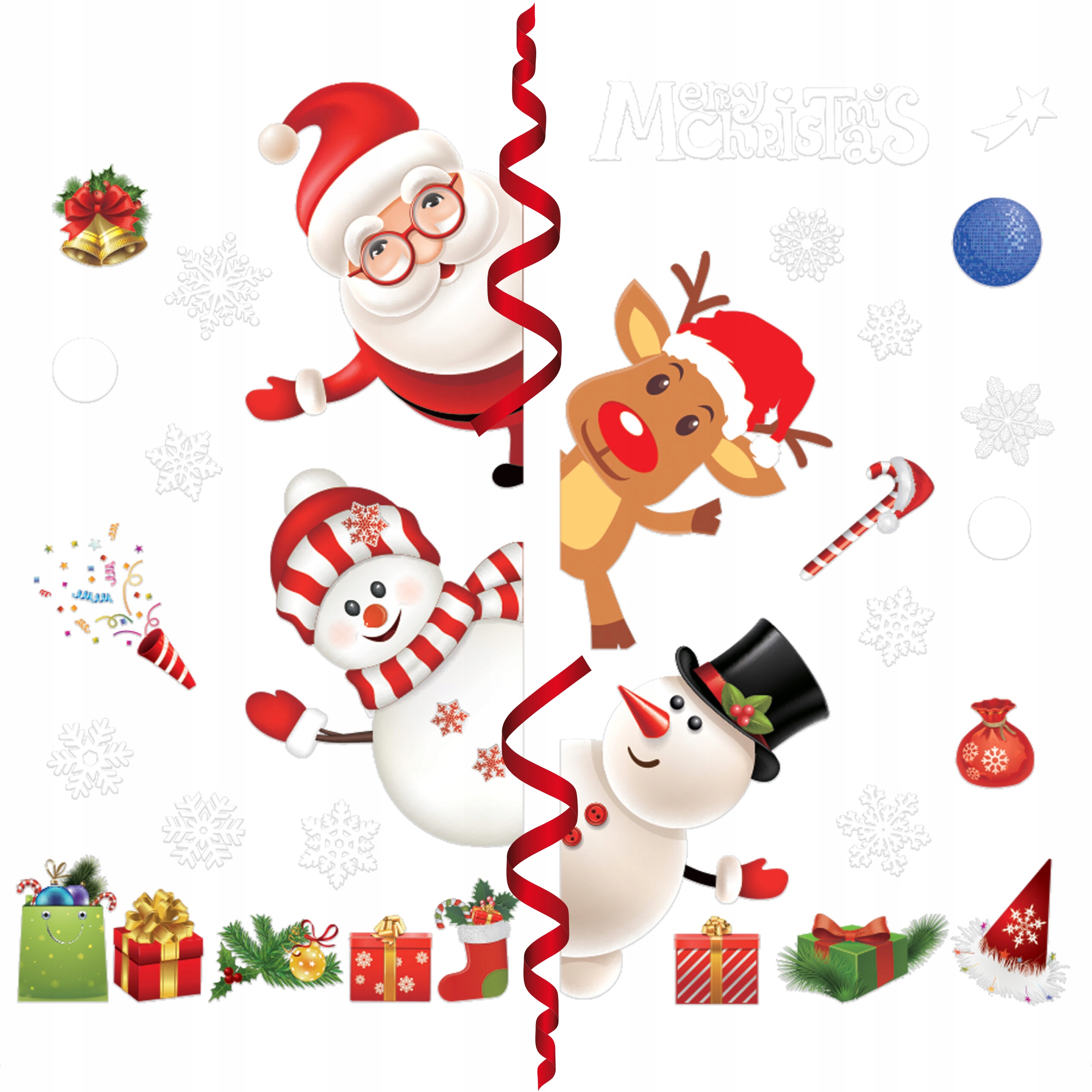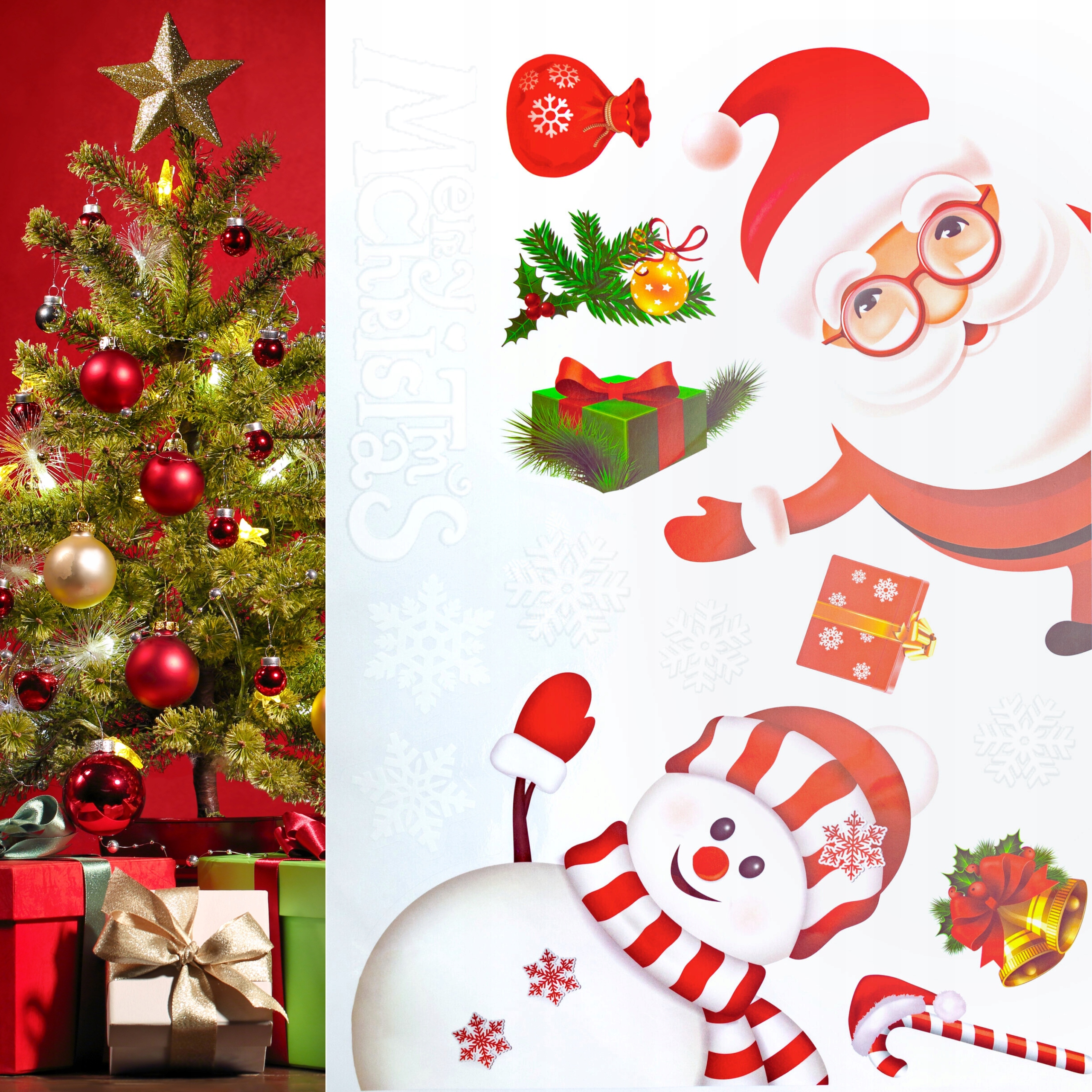 РОЖДЕСТВЕНСКИЕ НАКЛЕЙКИ НА ОКНА УКРАШЕНИЯ ОКНА РОЖДЕСТВЕНСКИЕ СНЕЖИНКИ ПОДАРОК САНТА