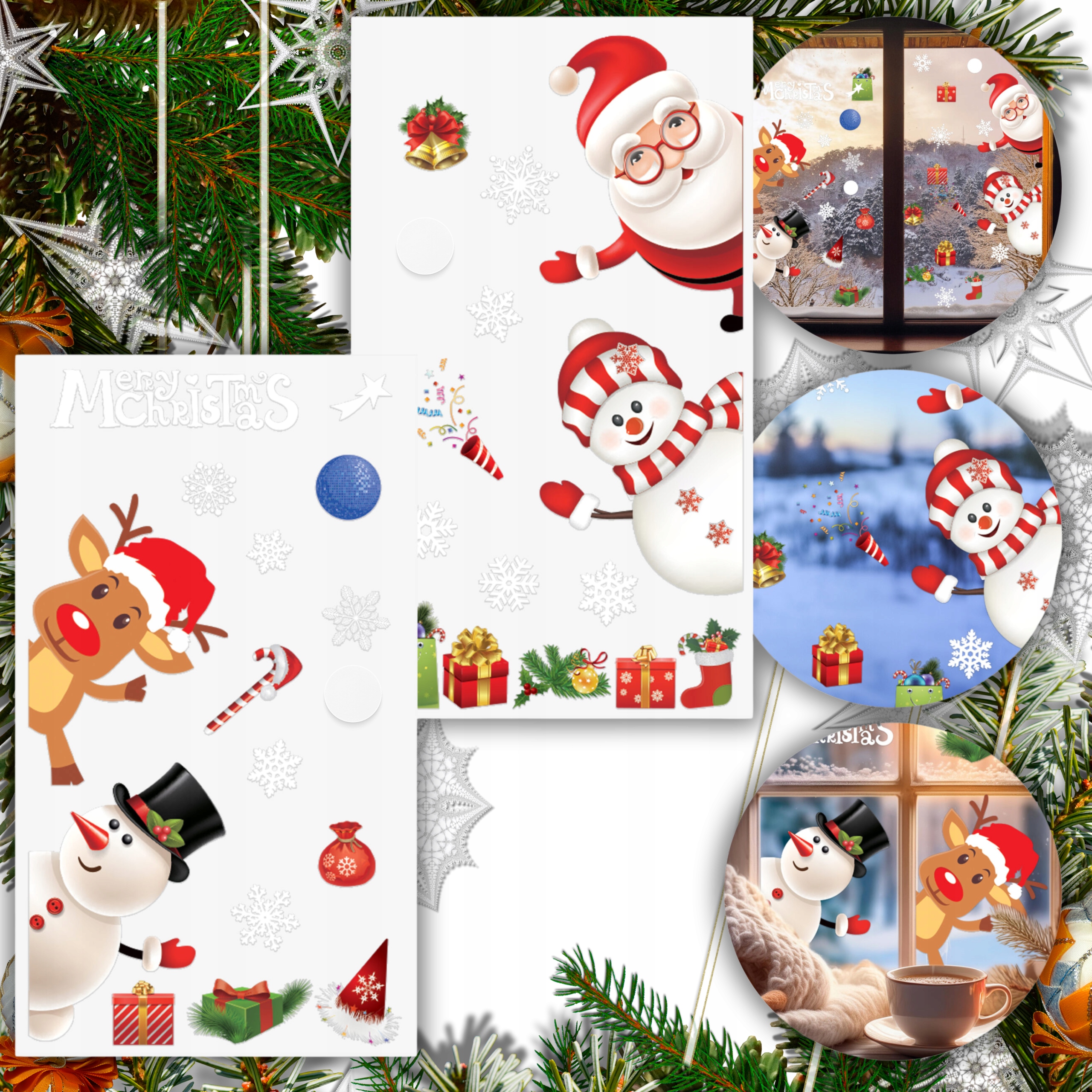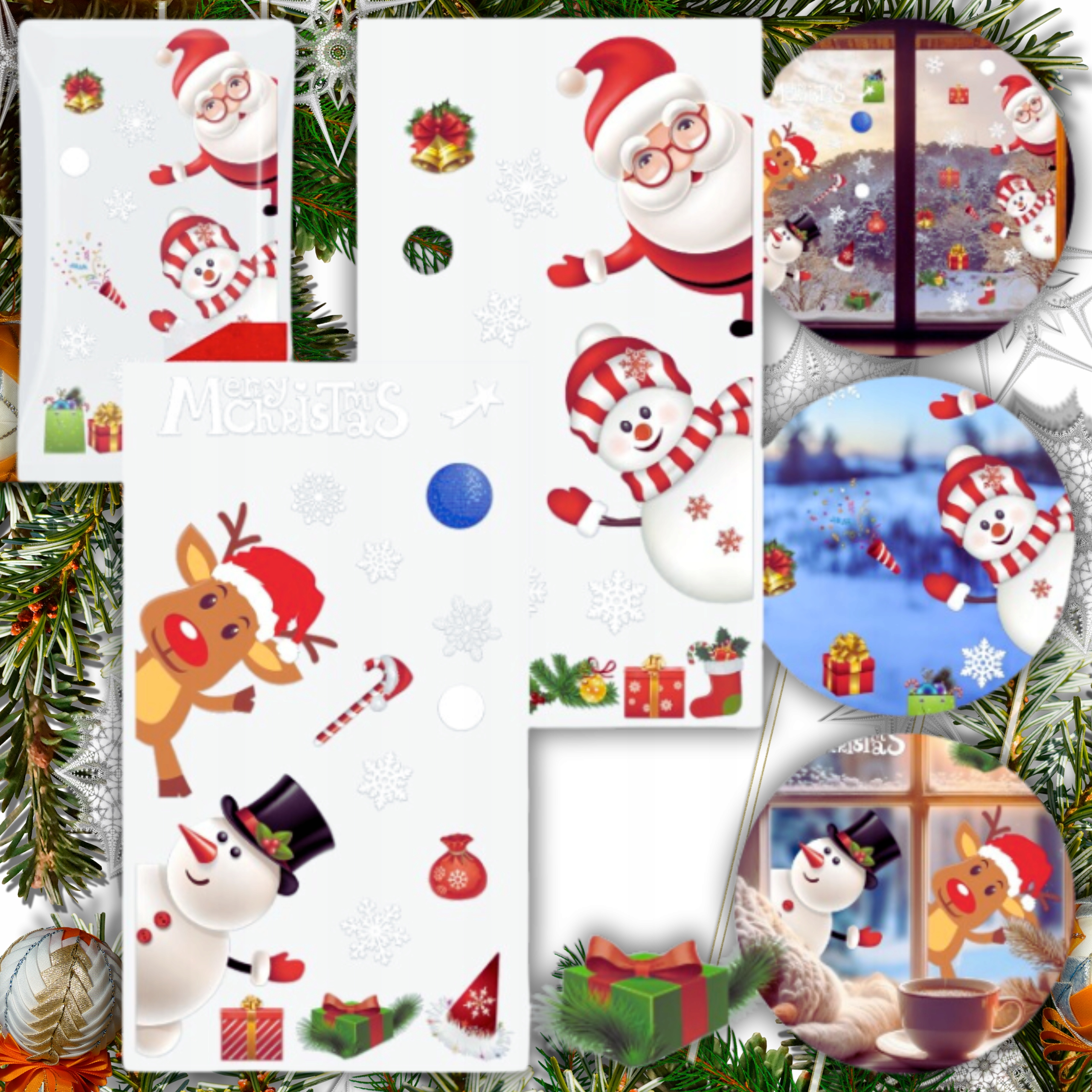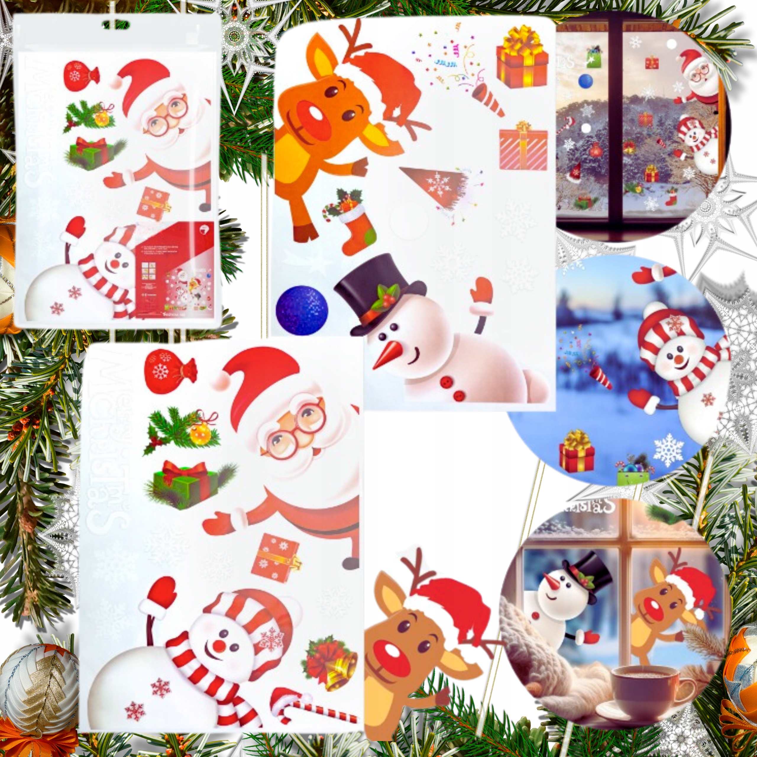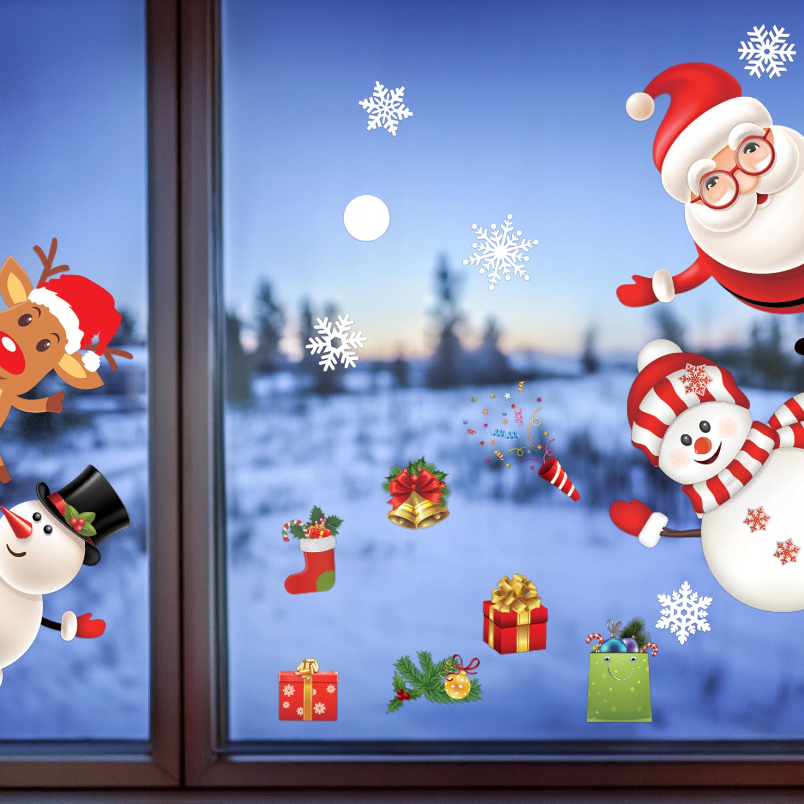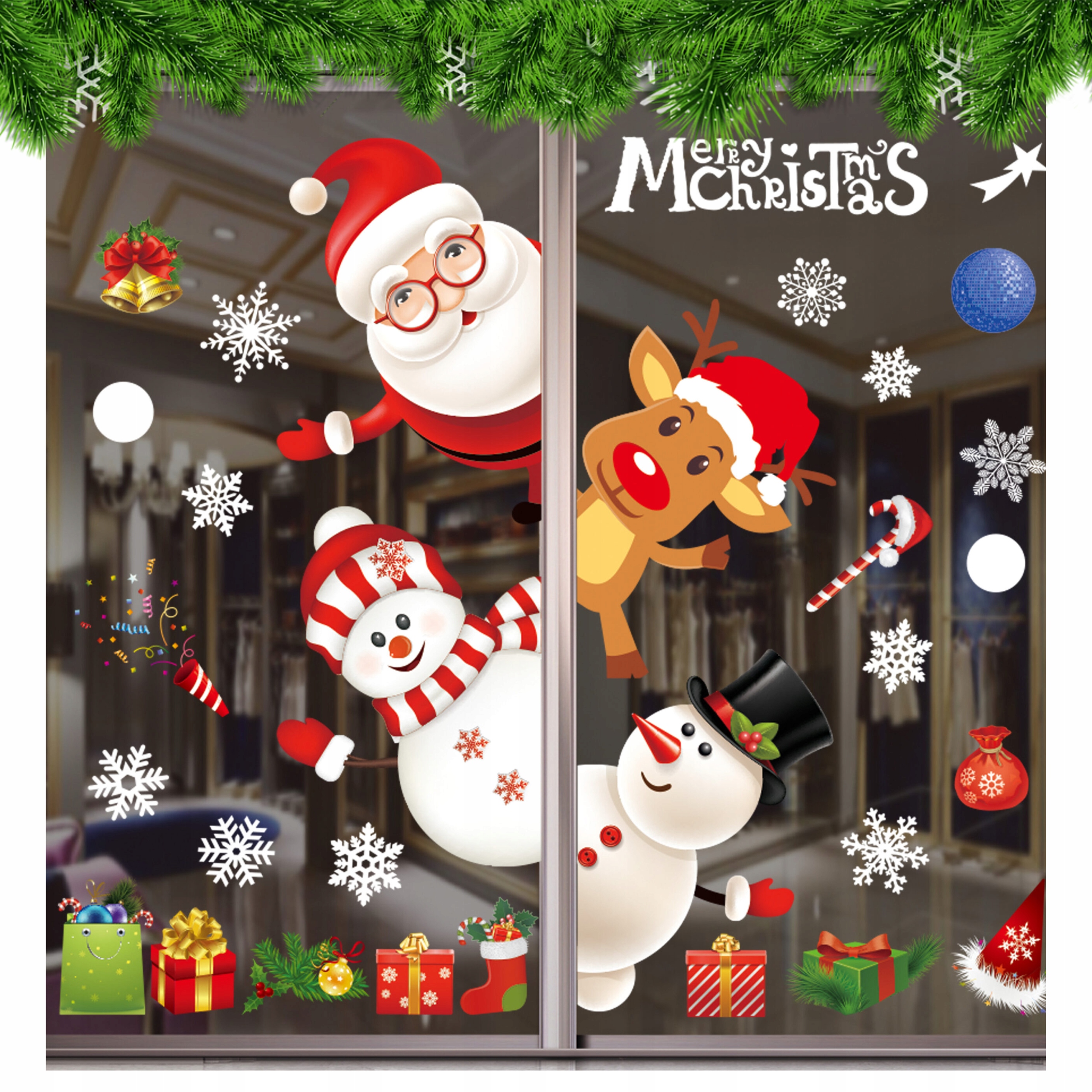 РОЖДЕСТВЕНСКИЕ НАКЛЕЙКИ НА ОКНА УКРАШЕНИЯ ОКНА РОЖДЕСТВЕНСКИЕ СНЕЖИНКИ ПОДАРОК САНТА