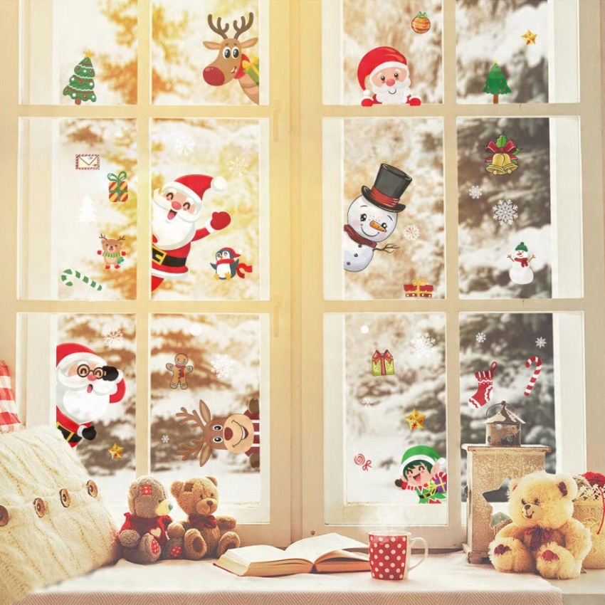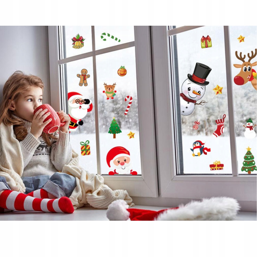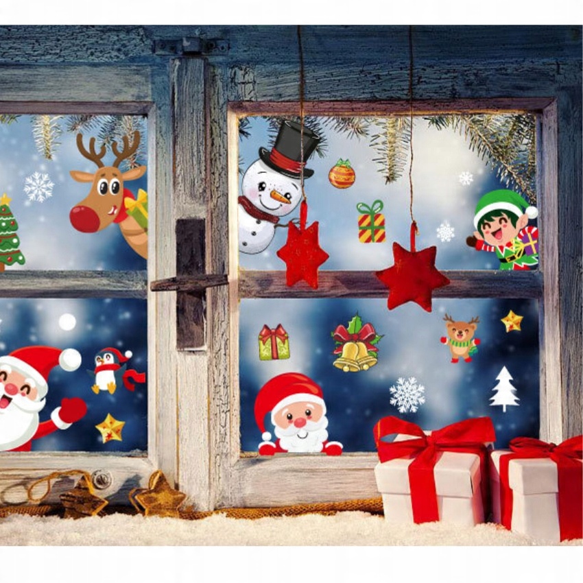 РІЗДВЯНІ НАЛІЙКИ НА ВІКНА САНТА ДЛЯ ДІТЕЙ ЯЛИЧОВІ ПРИКРАСИ ПОДАРУНКИ