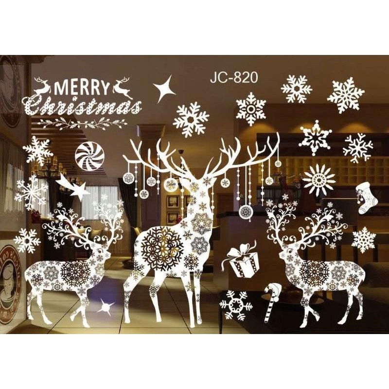 РОЖДЕСТВЕНСКИЕ НАКЛЕЙКИ Олени НА ОКНО ДЛЯ СТЕКЛА РОЖДЕСТВЕНСКИЕ БЕСКЛЕЙНЫЕ