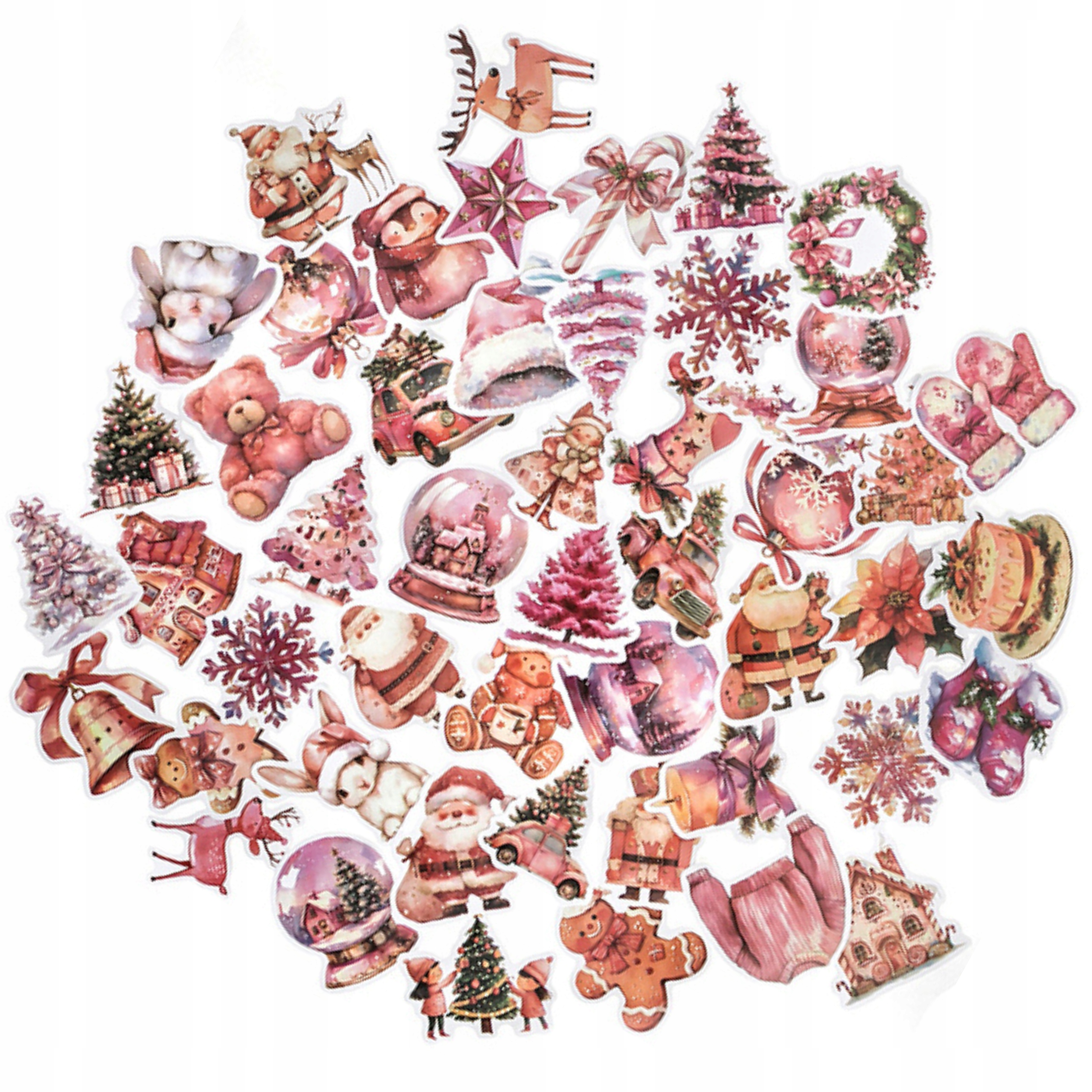РОЖДЕСТВЕНСКИЕ НАКЛЕЙКИ РОЖДЕСТВЕНСКАЯ ЕЛКА ПРЯНИКИ РОЗОВЫЕ ЗИМНИЕ ВИНИЛ ПРОЧНЫЕ 50 ШТ