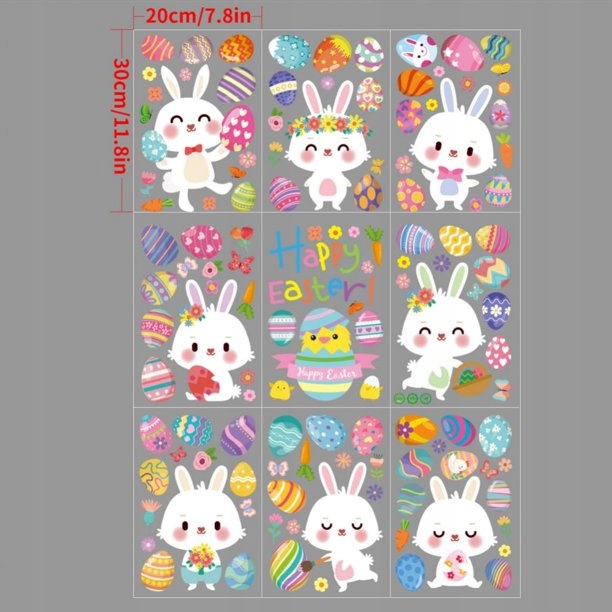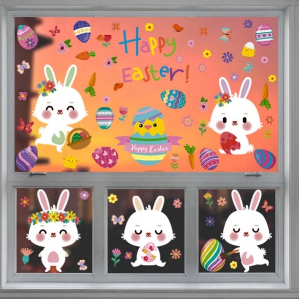 самоклеящаяся оконная декорация, многоразовая с кроликом, узором пасхальных яиц,