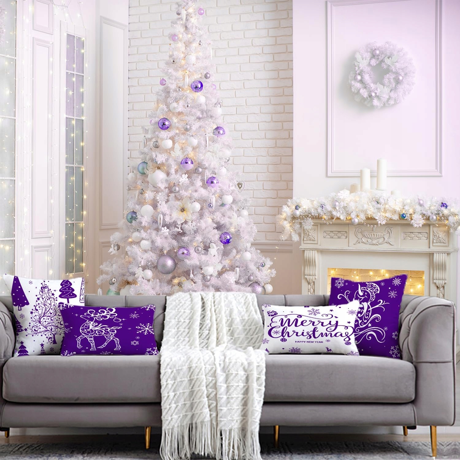 Рождественские наволочки Miaikoe 30x50, набор из 4 рождественских украшений: елки, олени, снеговики, декоративные наволочки для рождественских праздников в фермерском доме (фиолетовый)