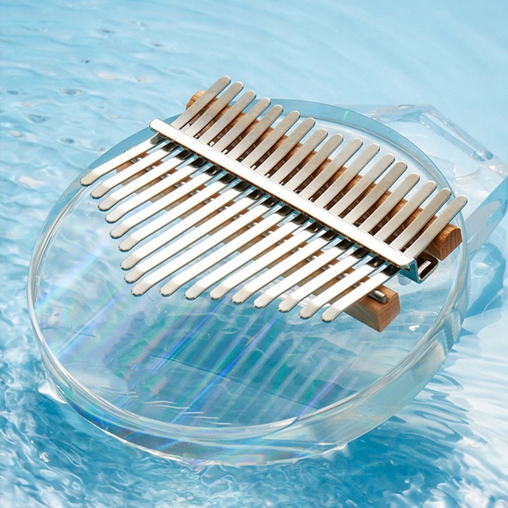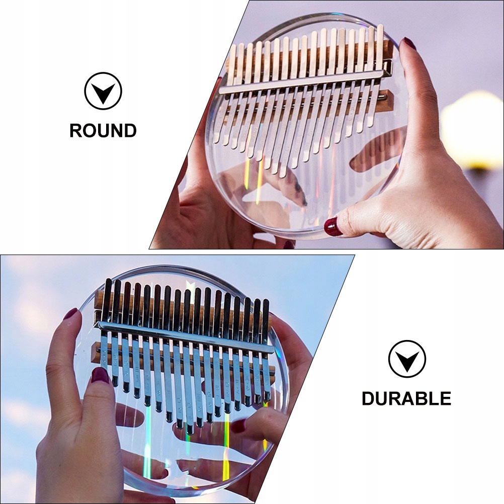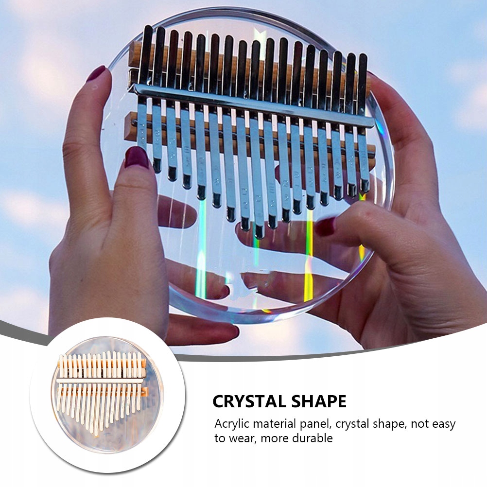 Изготавливается из акрила, который приобретает полную приятную вибрацию при игре на металлических клавишах, а затем создает мелодичные и продолжительные звуки.