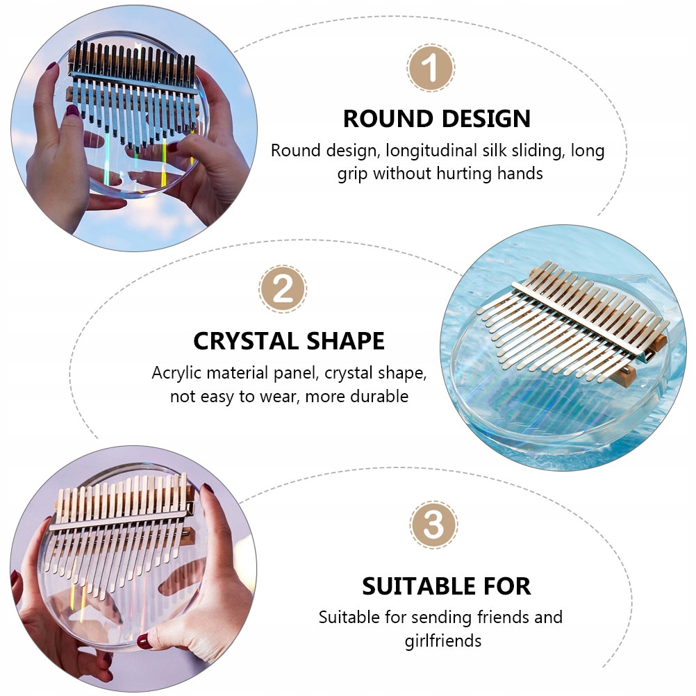 Эта калимба красивой формы изготовлена из прозрачного акрилового материала, имеет красивый внешний вид и изысканное качество изготовления. Легко играть и быстро освоить: просто держите его в руках и покусывайте зубы большими пальцами, чтобы издавать четкие и мелодичные звуки.