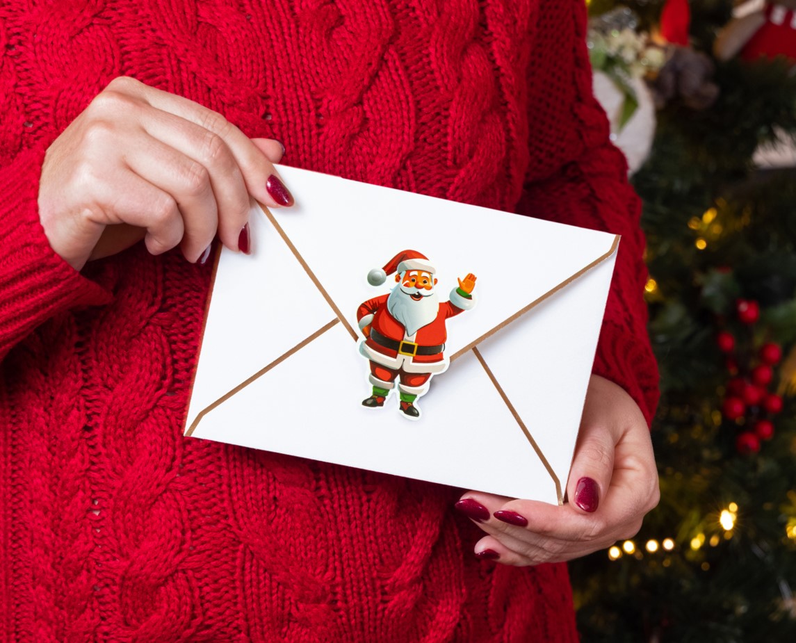 РОЖДЕСТВЕНСКИЕ НАКЛЕЙКИ ДЛЯ ПОДАРКОВ Орнамент Декоративный САНТА СНЕГОВИК СЛОН