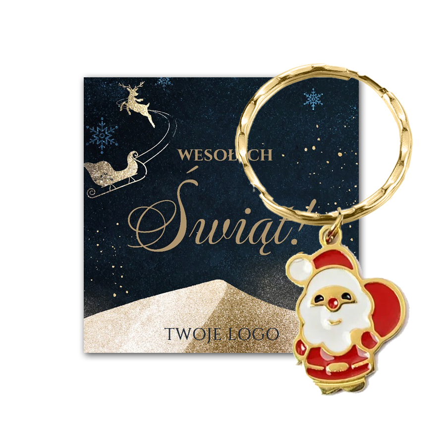 Стильный золотой брелок с мотивом Санта-Клауса – небольшой, но впечатляющий подарок, который подойдет в качестве подарка сотрудникам, клиентам или деловым партнерам.