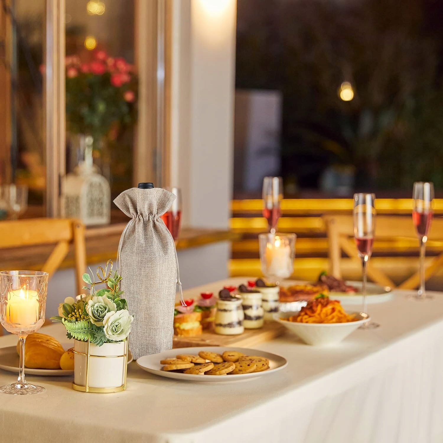 ✿ Чехлы для вина, которые можно стирать и использовать повторно: Эти чехлы для винных свитеров изготовлены из джутовой ткани, она мягкая и нежная, не потеряет внешний вид и не выцветет, если ее хорошо держать. Вы можете использовать его в следующем году, просто очистив его водой и высушив на воздухе в проветриваемом месте.