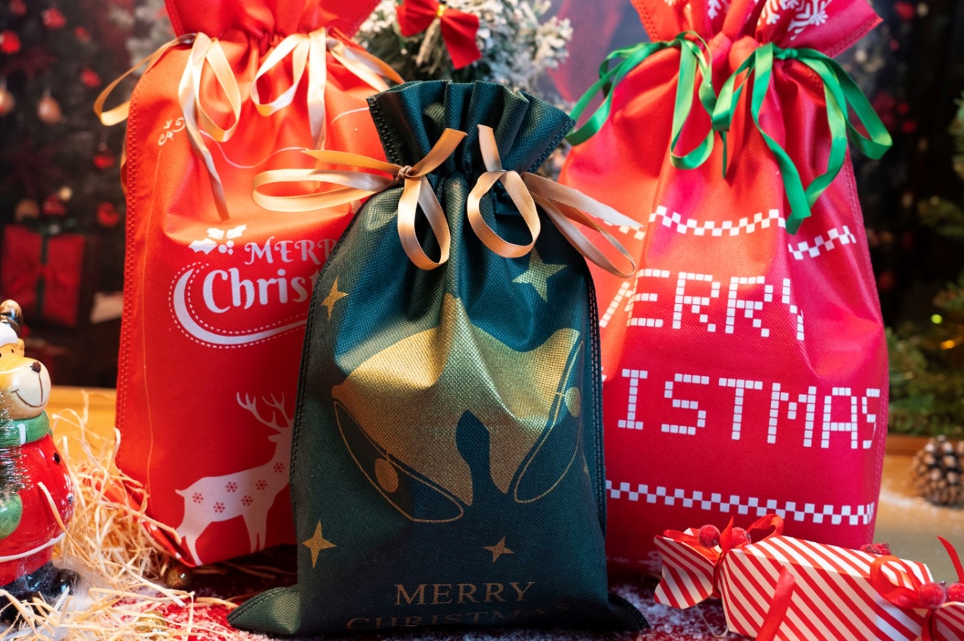 ☃️Изготовлены из прочных материалов, украшены очаровательными рождественскими мотивами ярких цветов, идеальны в качестве упаковки для любого подарка.