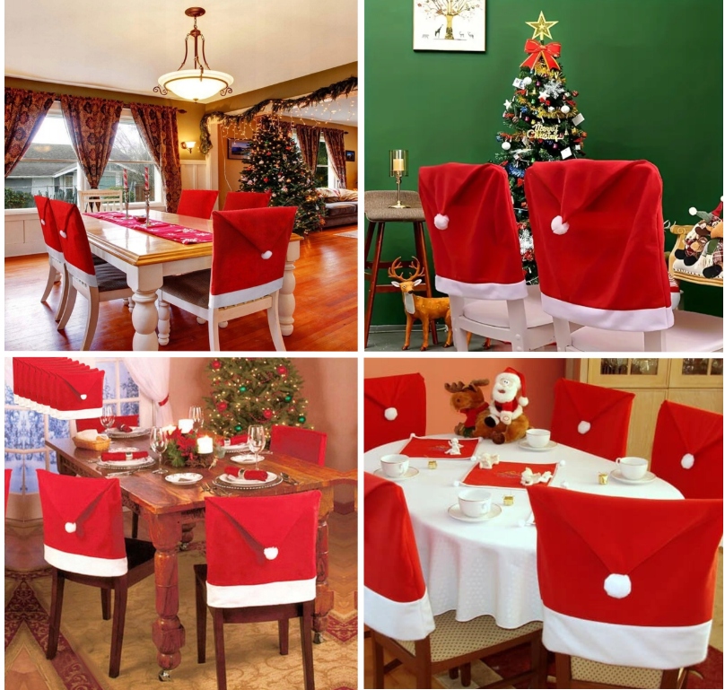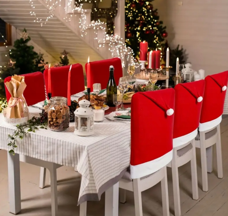 Рождественские украшения: 1 скатерть + 6 чехлов на стулья + 6 чехлов для столовых приборов.