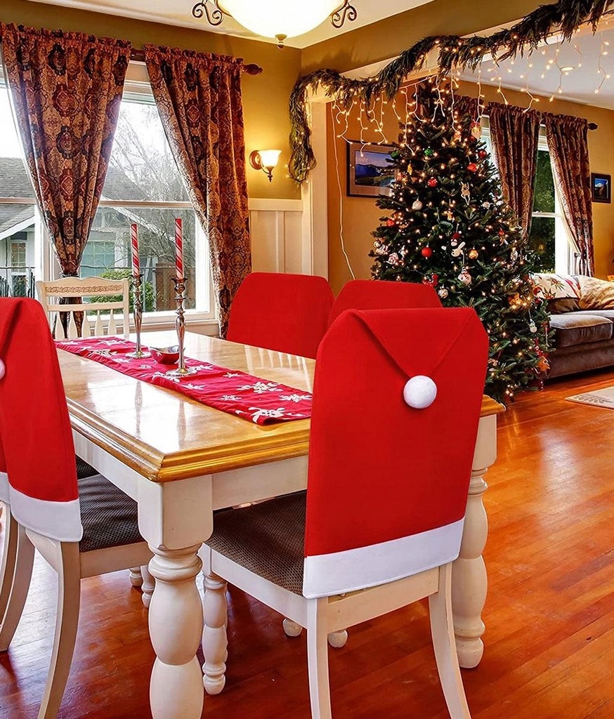 Набор рождественских украшений — 4 чехла на стулья + 6 ящиков для столовых приборов + одежда для бутылок