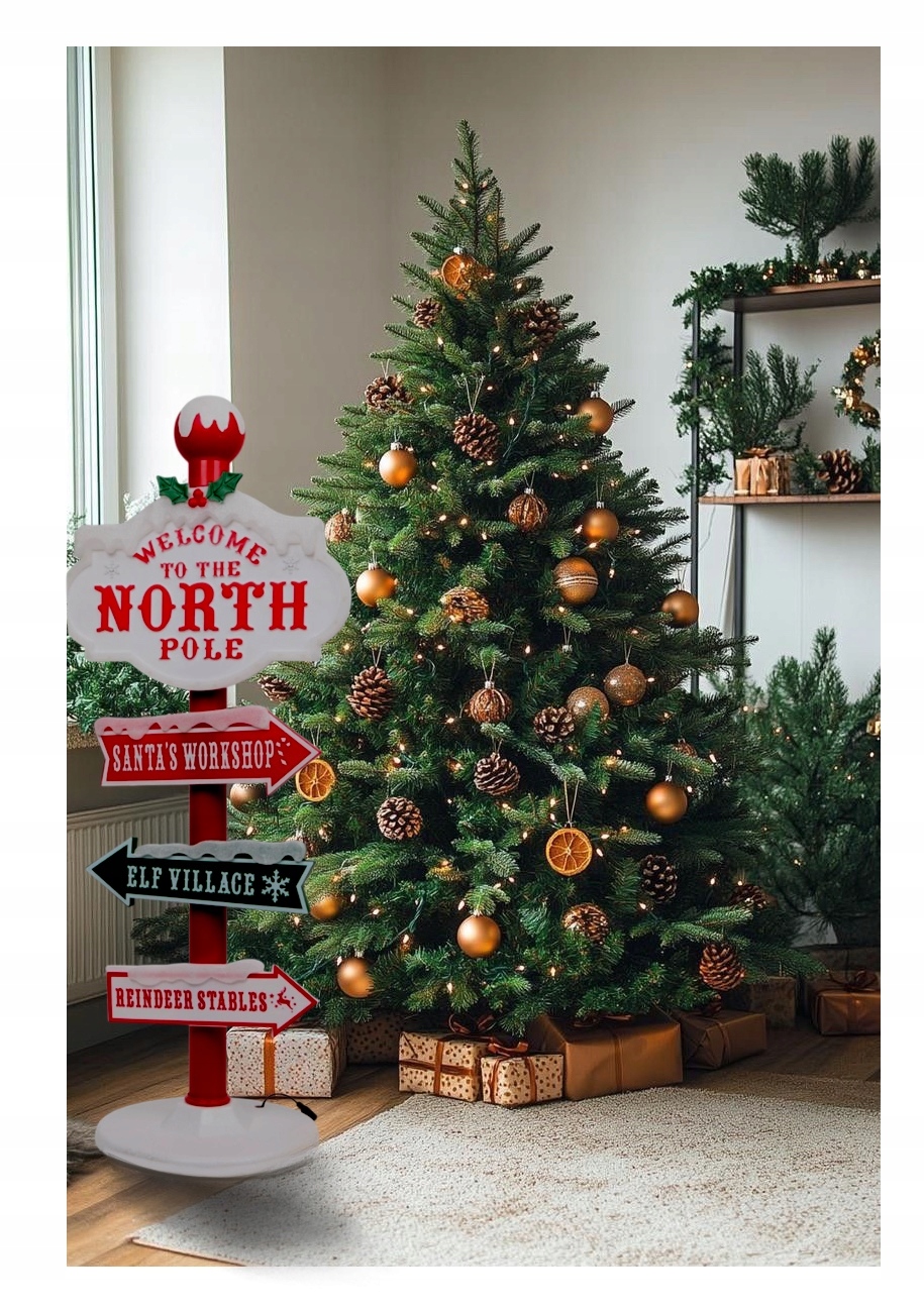 Погрузитесь в волшебство Рождества с уникальным украшением размера XL, которое перенесет вас прямо в деревню Санты! Этот впечатляющий указатель высотой 95 см со встроенной светодиодной подсветкой теплого белого цвета является настоящей жемчужиной среди рождественских украшений.
