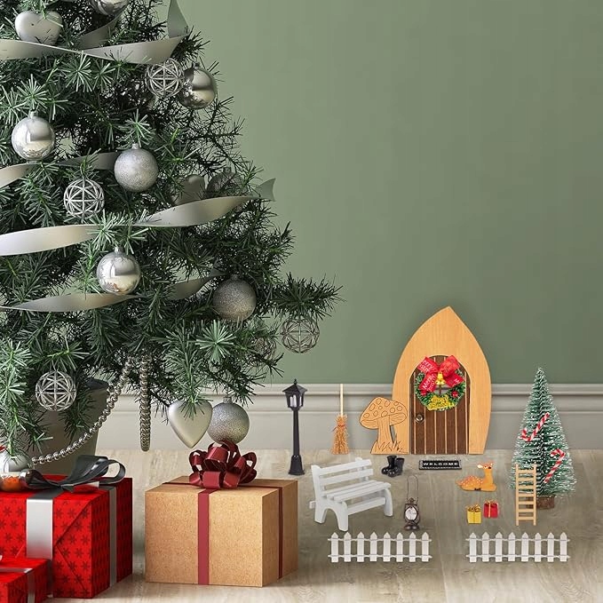 Рождественская дверь Creawoo Magical Elf, миниатюрная деревянная дверь + аксессуары. Новогодние украшения своими руками
