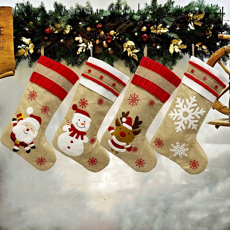 Новорічні шкарпетки для подарунків, декоративний камін, бежевий, РІЗНІ ВІЗЕРУНКИ, 4 шт.