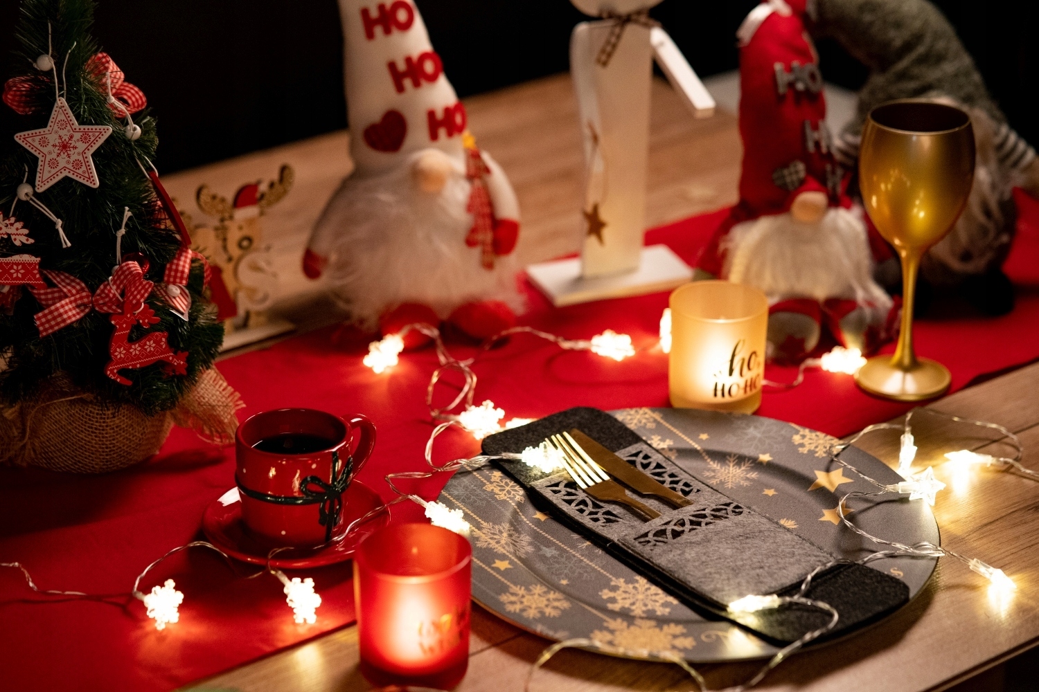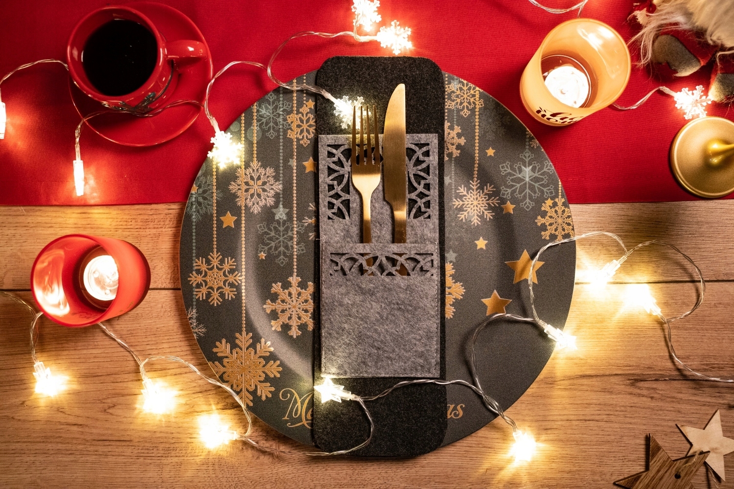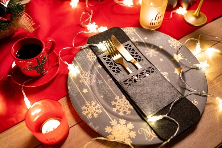 Рождественские столовые приборы охватывают серые чехлы 4 Пекс праздники для вечеринки