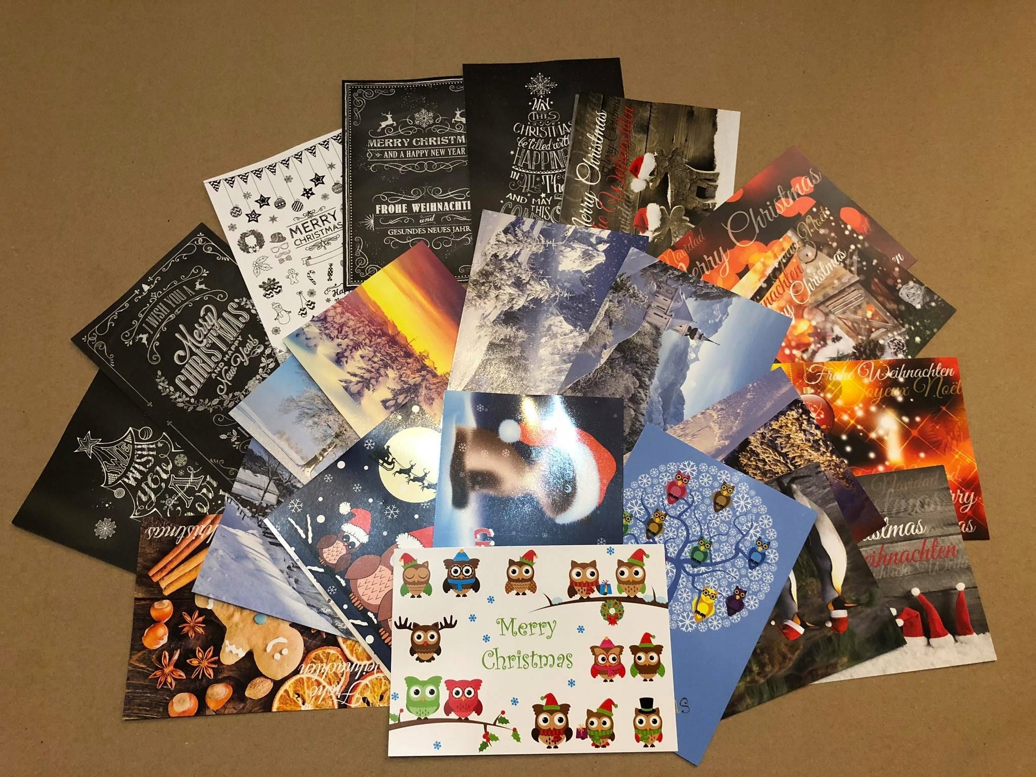 В наборе 24 открытки с рождественской и зимней графикой.
