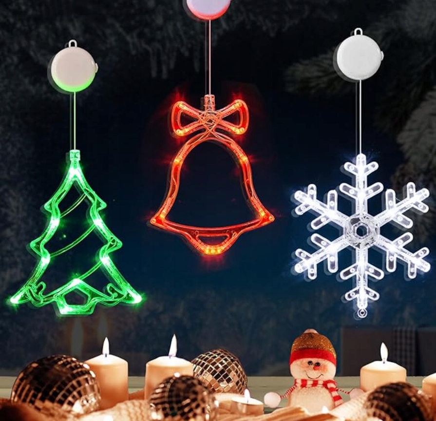 Рождественские светодиодные украшения — набор из 3 оконных гирлянд: колокольчик, елка, снежинки
