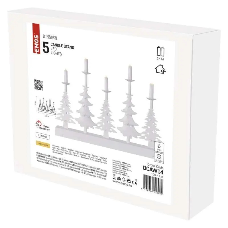 Рождественские гирлянды белый подсвечник 5 светодиодов 24 см 2x таймер теплого белого цвета АА EMOS