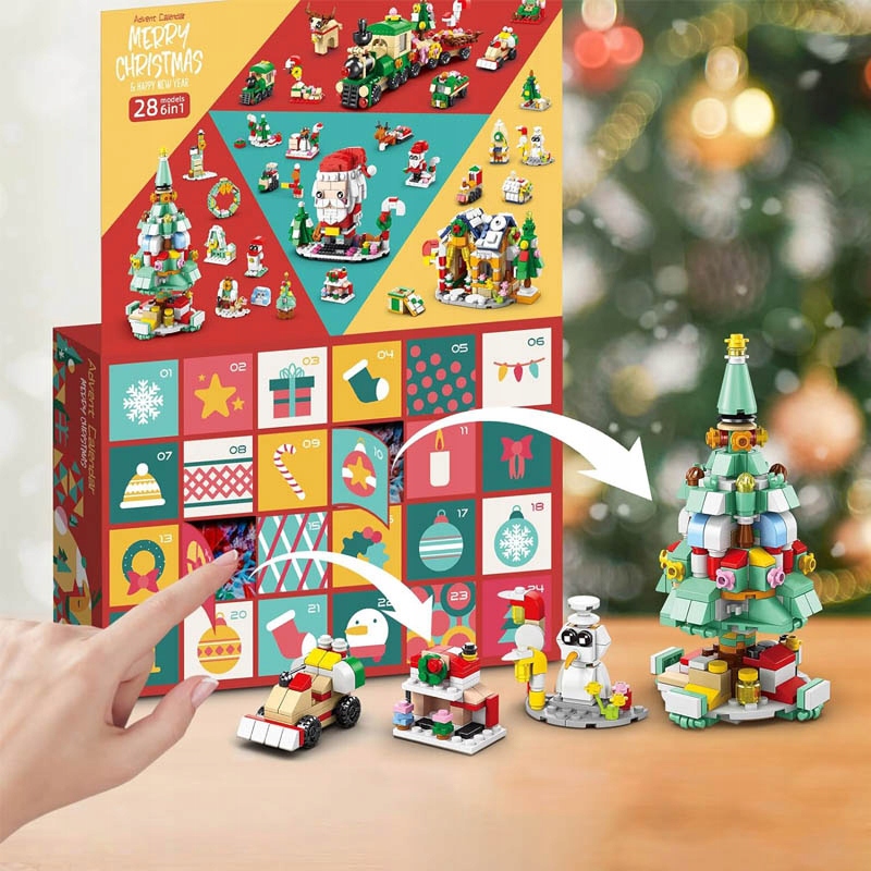 24 коробки с сюрпризами - В нашем наборе для сборки рождественского адвент-календаря есть 24 окошка, соответствующие 24 дням до Рождества. Открывайте рождественскую дверь каждый день, чтобы увидеть и собрать уникальную модель на праздничную тематику. А когда вы соберете все 6 мини-блоков, вы сможете собрать большой блок. каждый день предлагает новые строительные приключения, доставляя детям радость на протяжении всего фестиваля.