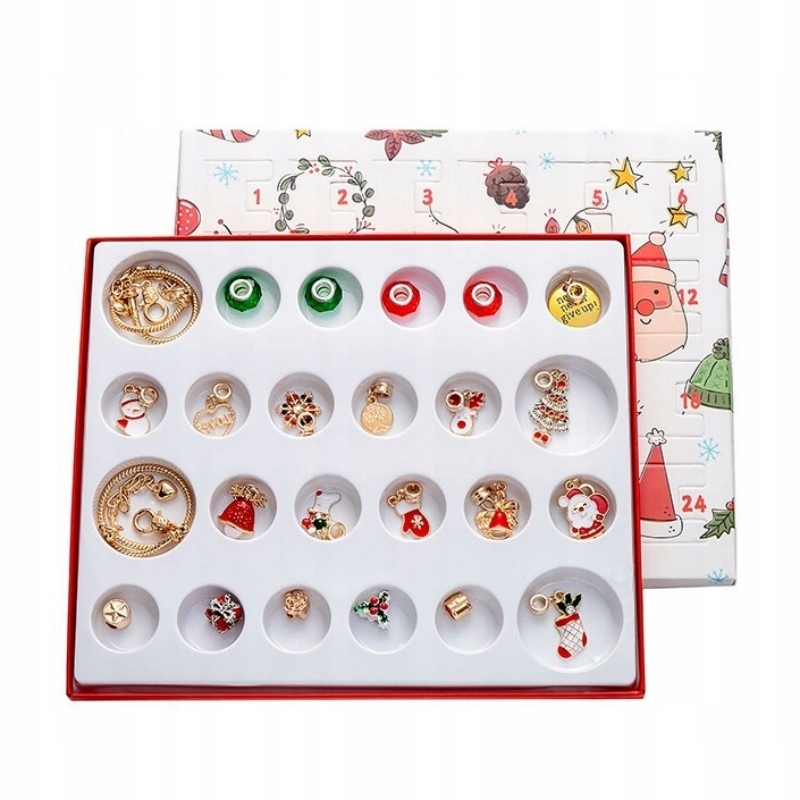 Рождественский адвент-календарь ювелирных изделий предлагает детям ежедневные занятия декоративно-прикладным искусством на каждый день в течение 24 дней до Рождества. Это может быть самой привлекательной особенностью для девочек: они могут сделать рождественские браслеты самостоятельно по своему вкусу и носить их на Рождество.