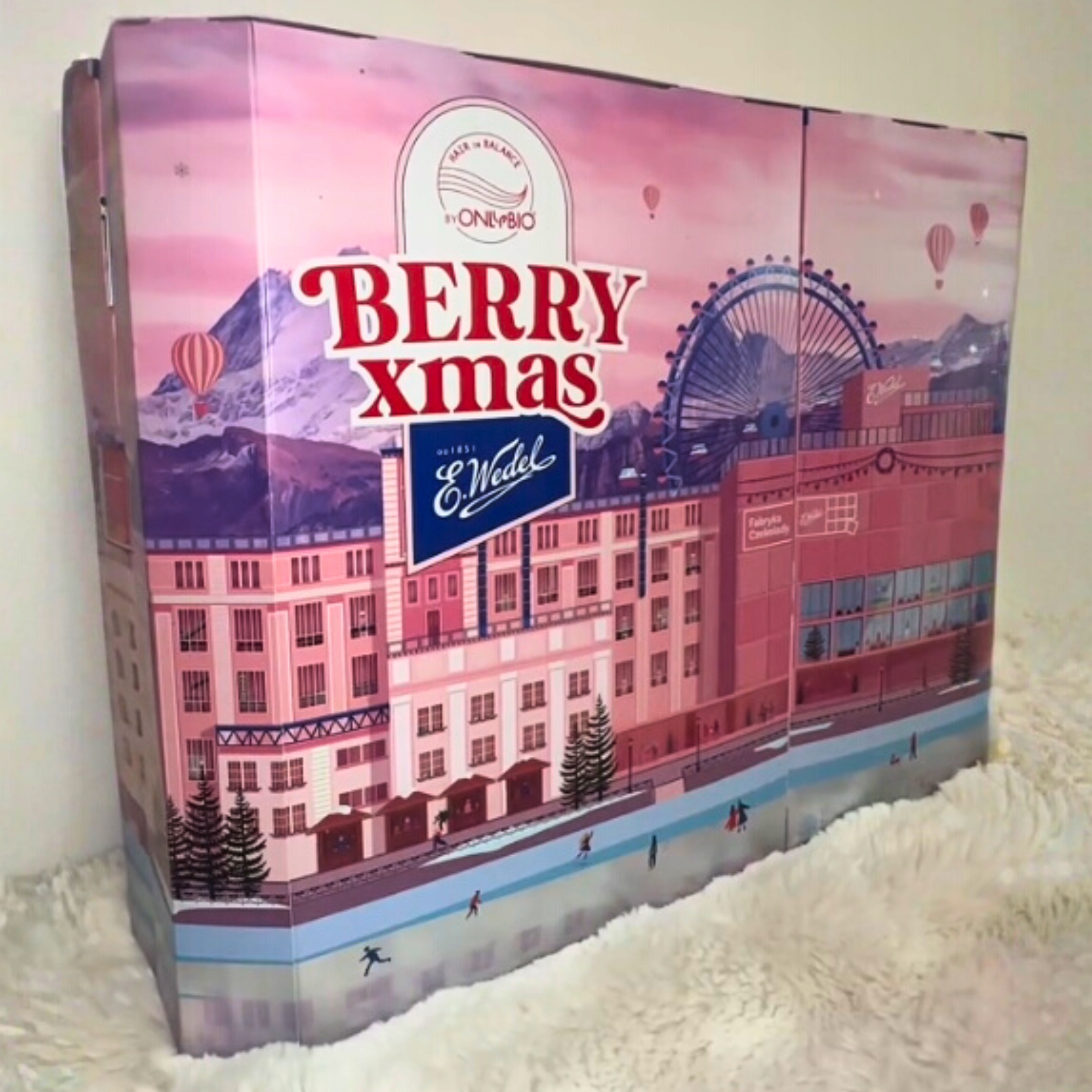 В набор входят серия 16 косметики ONLYBIO с ароматом, вдохновленным продукцией E.WEDEL, 4 разных сладости от бренда E.WEDEL и 4 аксессуара,т.е. всего 24 окна!