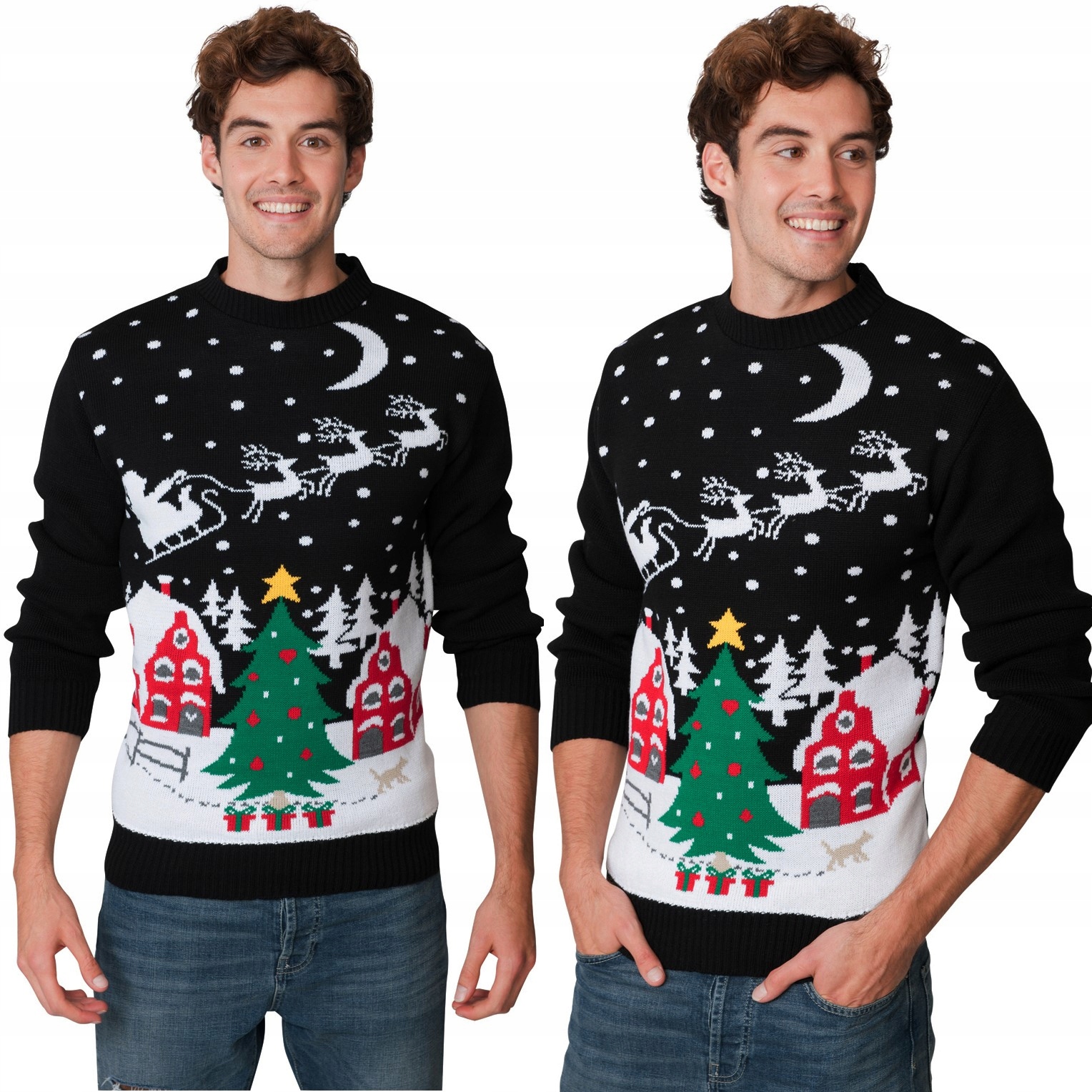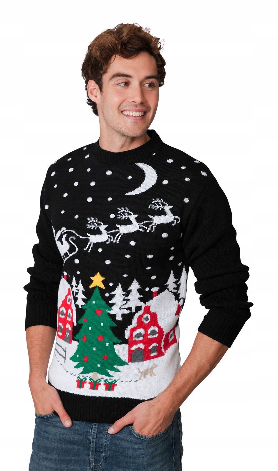 РІЗДВЯНИЙ ЧОРНИЙ РІЗДВЯНИЙ ДЖЕМПЕР З ЯЛИНКОЮ Дід Мороз