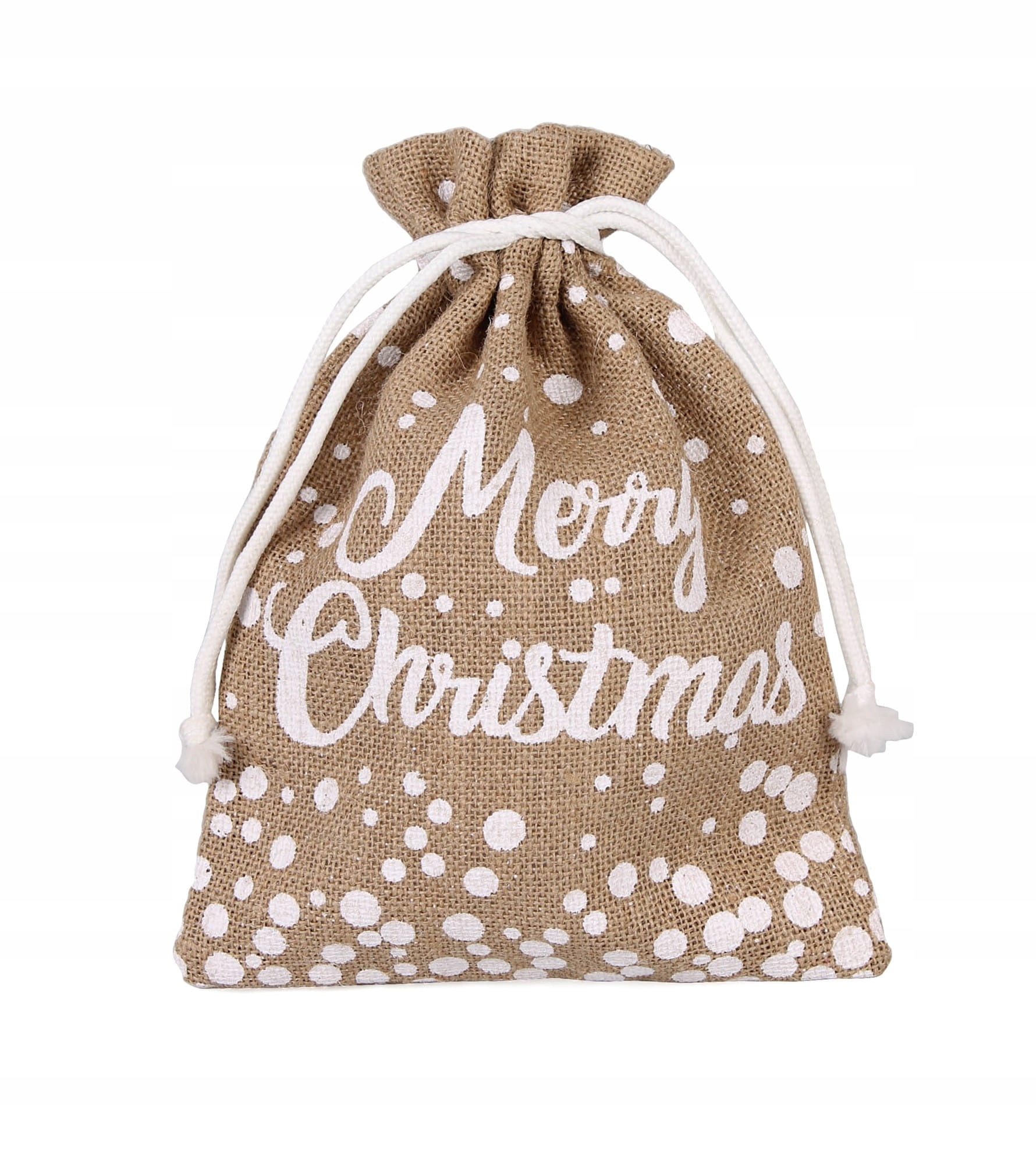 РОЖДЕСТВЕНСКИЙ ДЖУТОВЫЙ СУМОК "ВЕСЕЛОГО РОЖДЕСТВА" НА ПОДАРОК 30х22 см