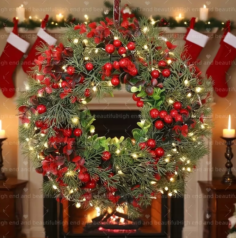 Венок не требует электропитания, он не теряет своего цвета и может использоваться в течение многих сезонов. Это отличный способ добавить уютную зимнюю атмосферу в ваш интерьер.