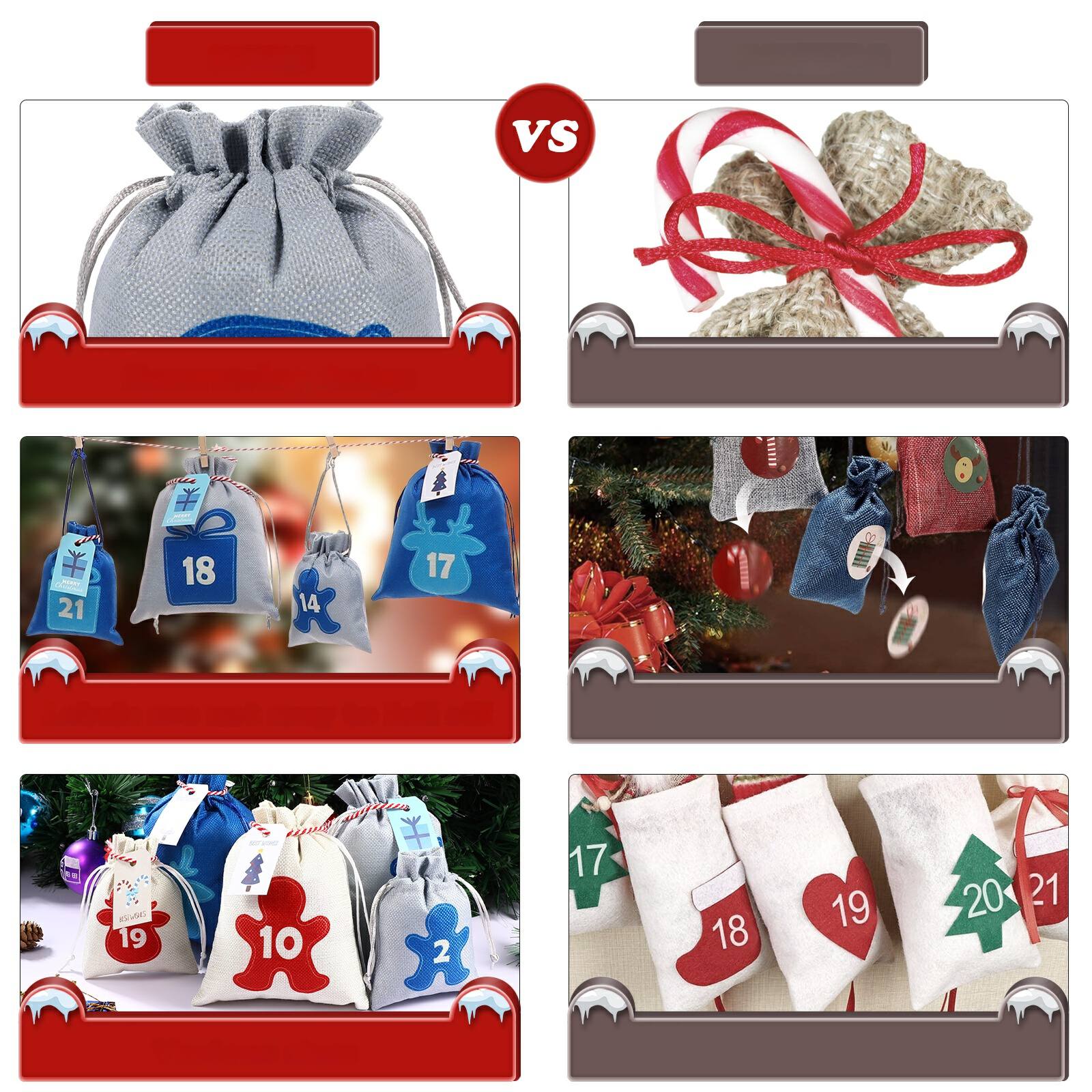 ✅ Объект - это праздничные сумки со строкой. Идеально подходит для хранения конфет, косметики, игрушек, шоколад, ювелирных изделий, миниатюрных моделей, купонов или других небольших подарков. Добавьте рождественское развлечение и эмоции в рождественское рождество или начните новый с этим рождественским календарем Адвента, идеальное дополнение к рождественским украшениям, рождественским елкам, стенам или камину.