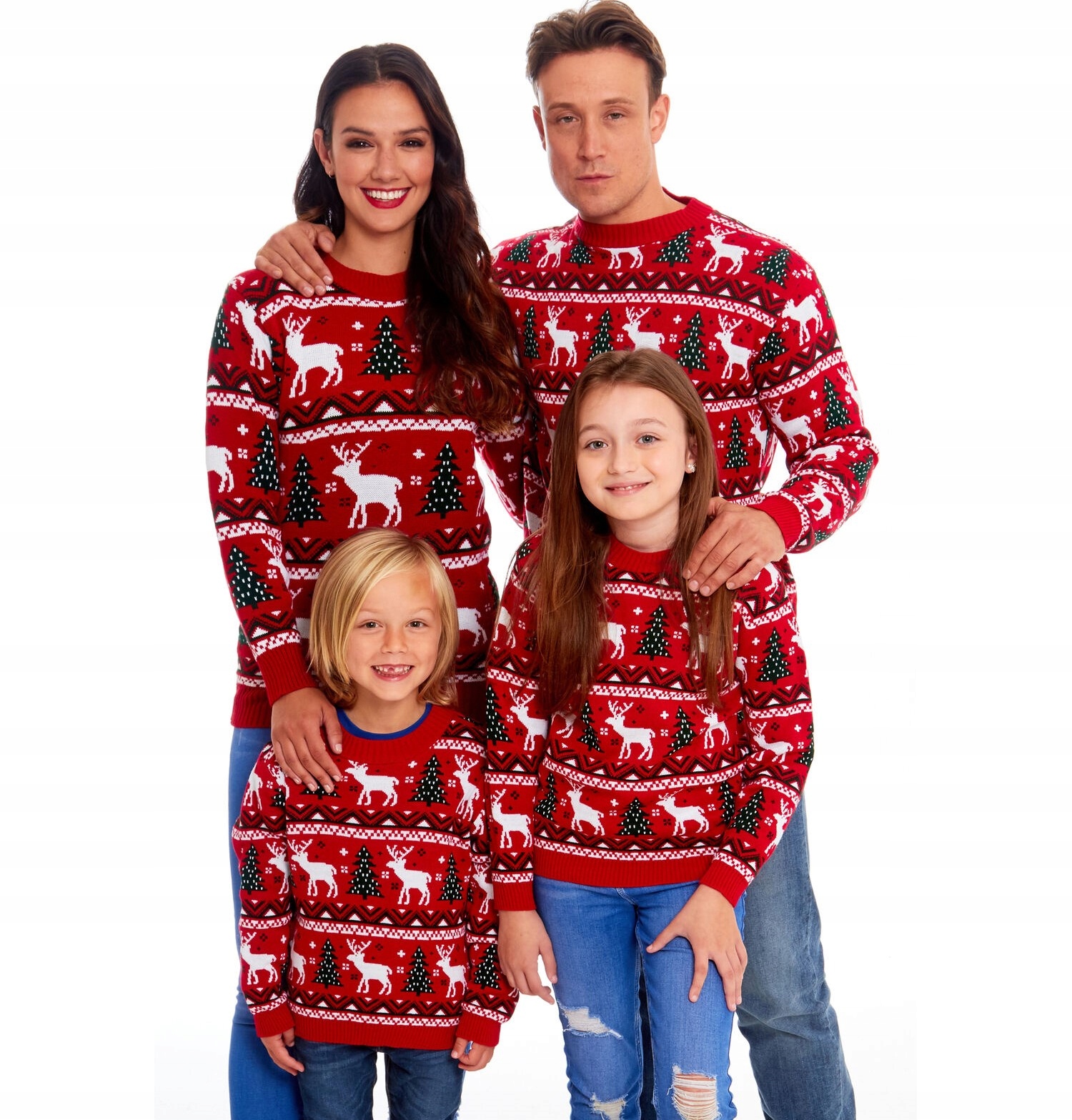 СЕМЕЙНЫЙ КОМПЛЕКТ КРАСНЫХ РОЖДЕСТВЕНСКИХ СВИТЕРОВ 2+2