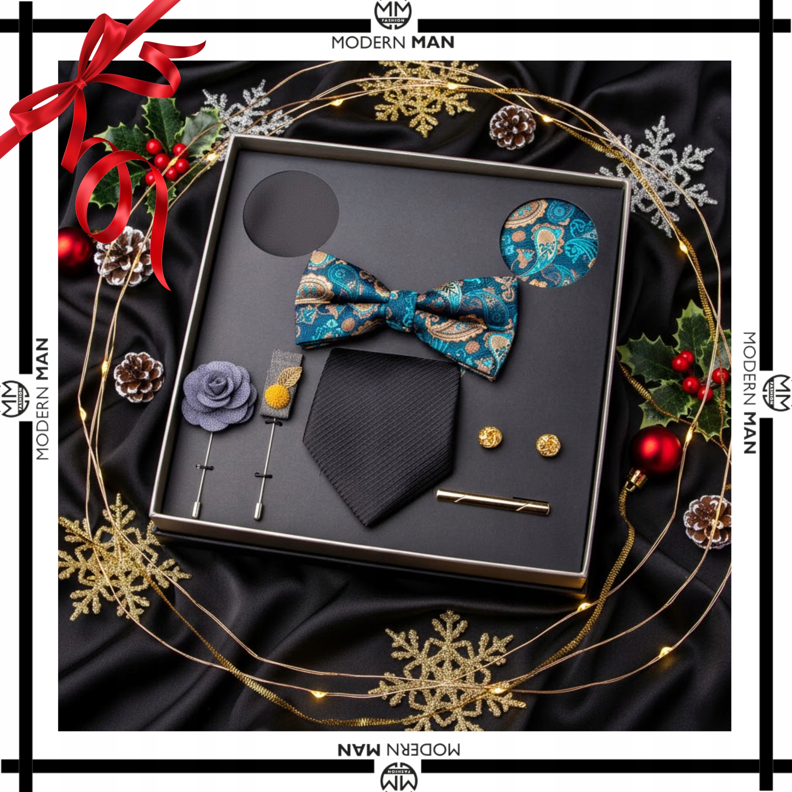 ✅Это полный набор аксессуаров для мужчины, который ценит классический шик и постоянство стиля без лишних компромиссов. В одной коробке вы получаете галстук, бабочку, два нагрудных платка, запонки, зажим для галстука и две броши, набор, позволяющий создавать различные конфигурации, от свадьбы до деловой встречи. Бирюзовый, черный и золотой (в зависимости от стиля) создают четкий код элегантности, а повторяющиеся текстурные мотивы создают гармоничный ритм между рубашкой, костюмом и аксессуарами. Эстетическая коробка с логотипом Modern Man упорядочит все и защитит аксессуары, упрощая их хранение в промежутках между событиями. Каждый элемент имеет классические пропорции, поэтому хорошо смотрится и в жизни, и на фотографиях, без эффекта преувеличения. Это решение для тех, кто хочет иметь всегда готовый набор для создания уверенного, элегантного образа – именно поэтому его стоит иметь под рукой. Кроме того, это отличная идея для рождественского подарка, который сразу производит впечатление своей продуманностью.