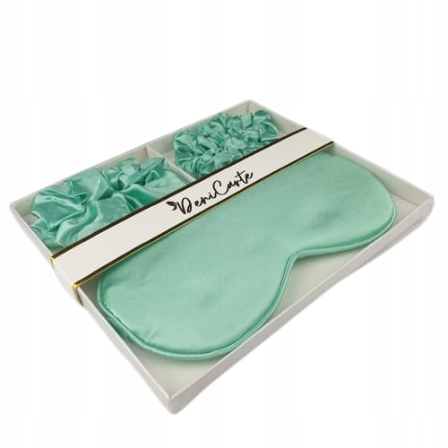 Мягкая атласная повязка для глаз и три резинки для волос в элегантной подарочной упаковке.