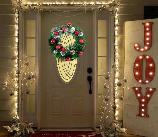 - как украшение входной двери, встречая гостей рождественской атмосферой,
