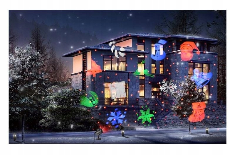 Водонепроницаемый лазерный проектор, который создает световое освещение с помощью движущихся огней, которые позволяют осветить ваш дом, деревья или сад. Проектор излучает отдельные световые точки в 12 различных узорах, которые находятся в постоянном движении. Устройство можно использовать внутри и снаружи помещения. Он устойчив к сложным погодным условиям, например, снегу, морозу или дождю. Прожектор потребляет на 99% меньше энергии, чем традиционные лампы, поскольку он изготовлен с использованием современных технологий и является энергосберегающим изделием. Установить проектор очень просто: достаточно воткнуть шахту в землю и направить свет, например, на фасад здания, чтобы получить интересные световые эффекты. Наш продукт не только хорошо подойдет зимой, но и отлично смотрится в качестве декоративного элемента сада летом или осенью, например, во время мероприятий. Самый интересный эффект будет достигнут, если разместить точечный светильник примерно в 7 метрах от фасада и осветить 100 м2.