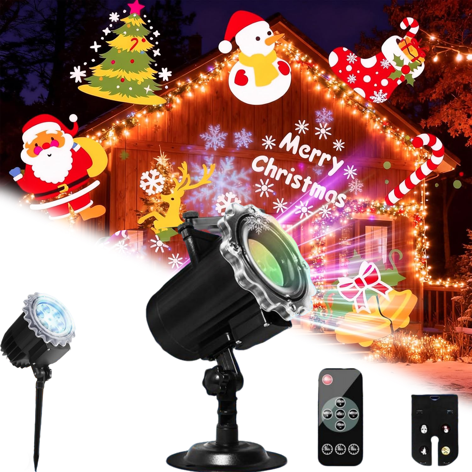 ⭐️Рождественский проектор с дистанционным управлением, светодиодный проектор с эффектом снежинки для Хэллоуина, 16 слайдов с 64 различными узорами для украшения сада и интерьера.⭐️