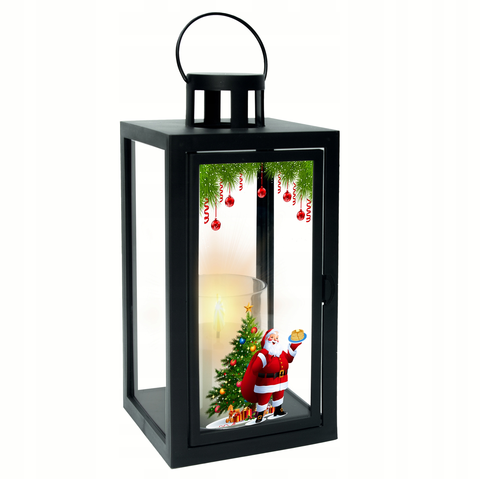 ✅ Фонарь украшен рождественской графикой.