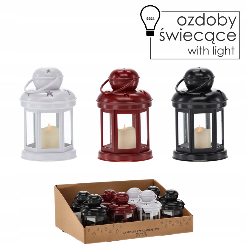 РІЗДВЯНИЙ ЛІХТАР З LED ВСТАВКОЮ 19 СМ ЧЕРВ