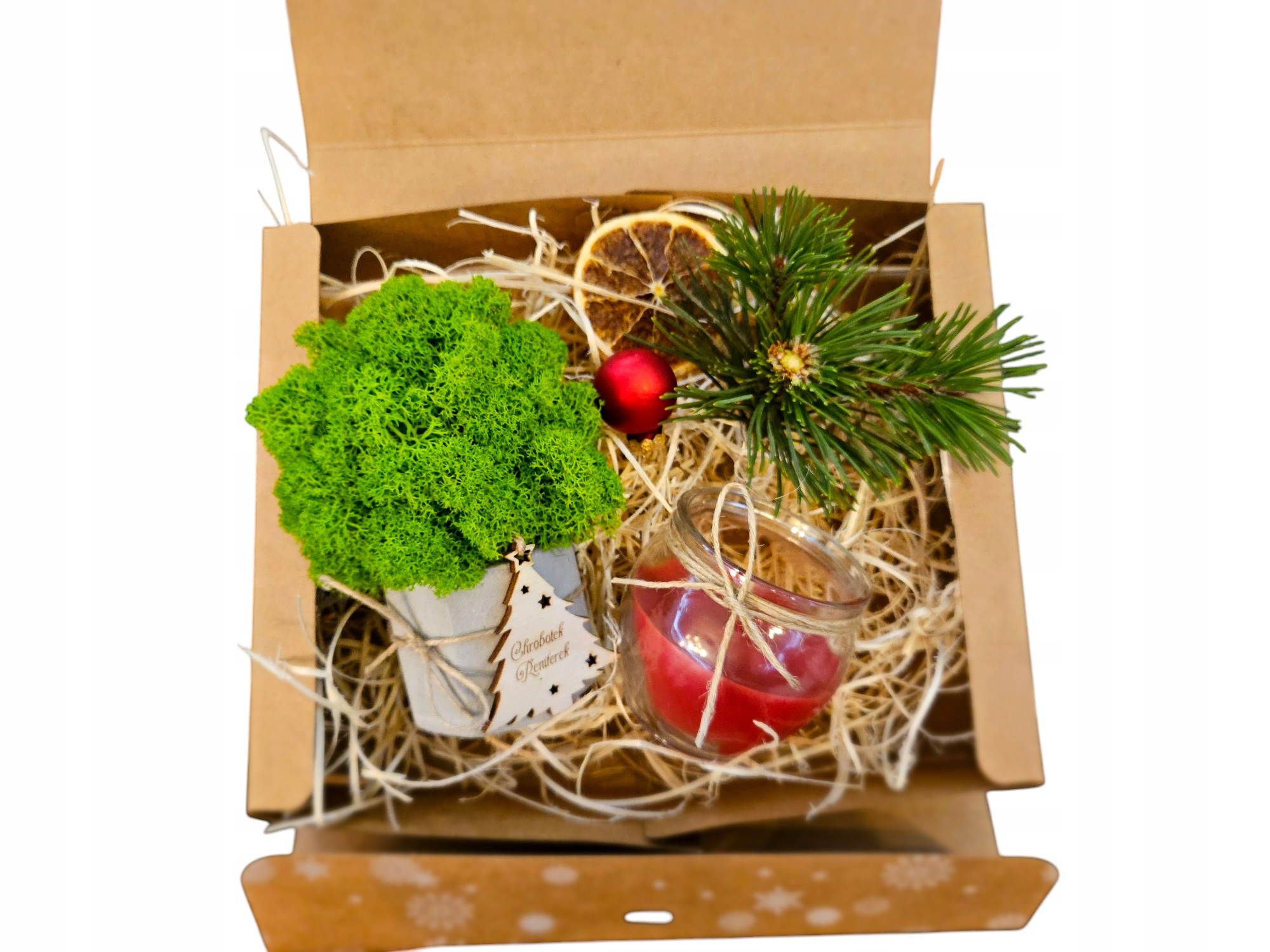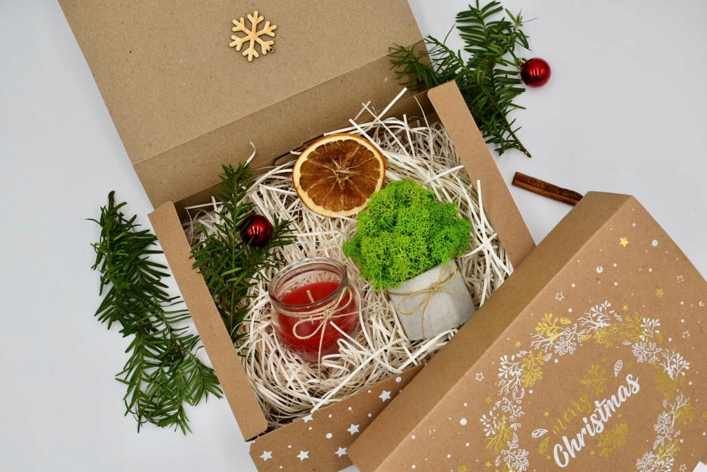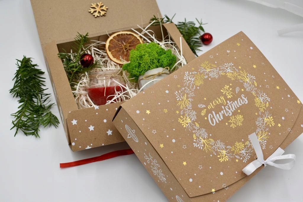 - коробочка в экологической, красиво оформленной, рождественской упаковке, с крышкой,
