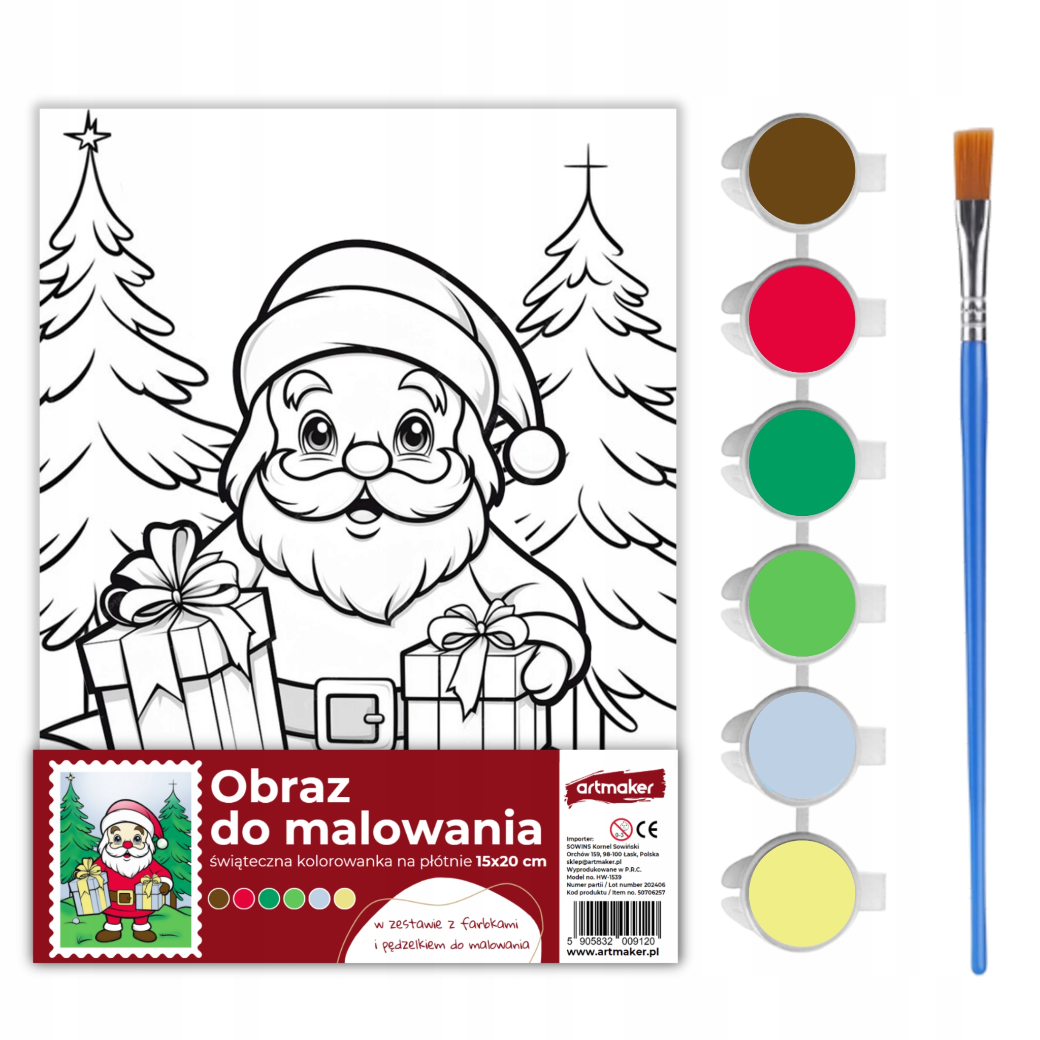 Творческая живопись, набор для Рождества, идеально подходит для подарка для Дня и Рождества Святого Николаса! Покрасьте холст с принтом Николаса, 6 акриловых красок и кистью - все, что вам нужно для создания уникального рождественского украшения.