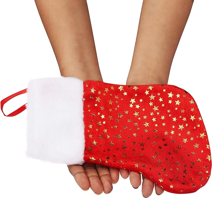 Рождественский мешок для чулок - 22 см красный подарочный пакет для рождественских носков - Рождественский мешок для наполнения носков подарочный камин Рождественское украшение с узором в виде золотых звезд