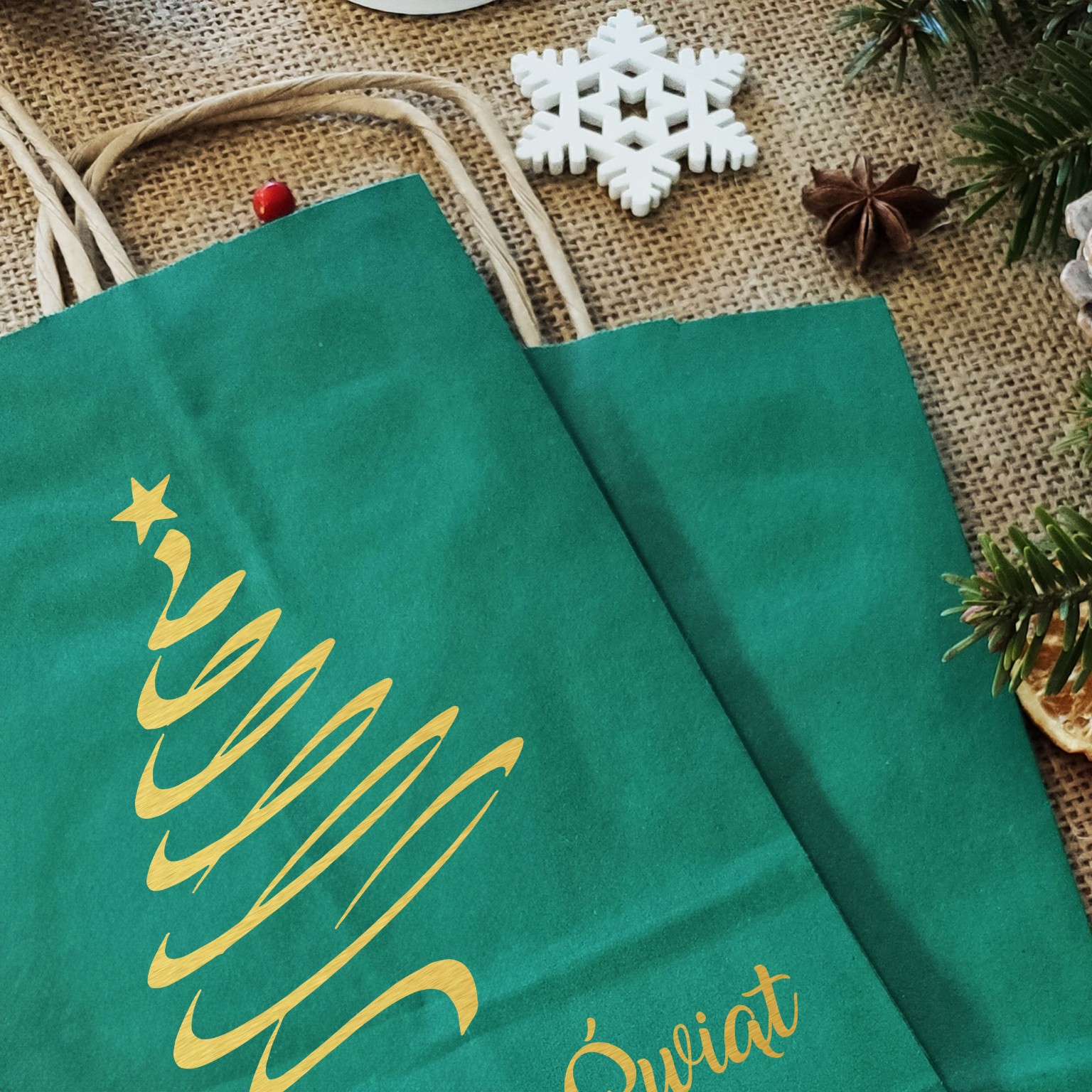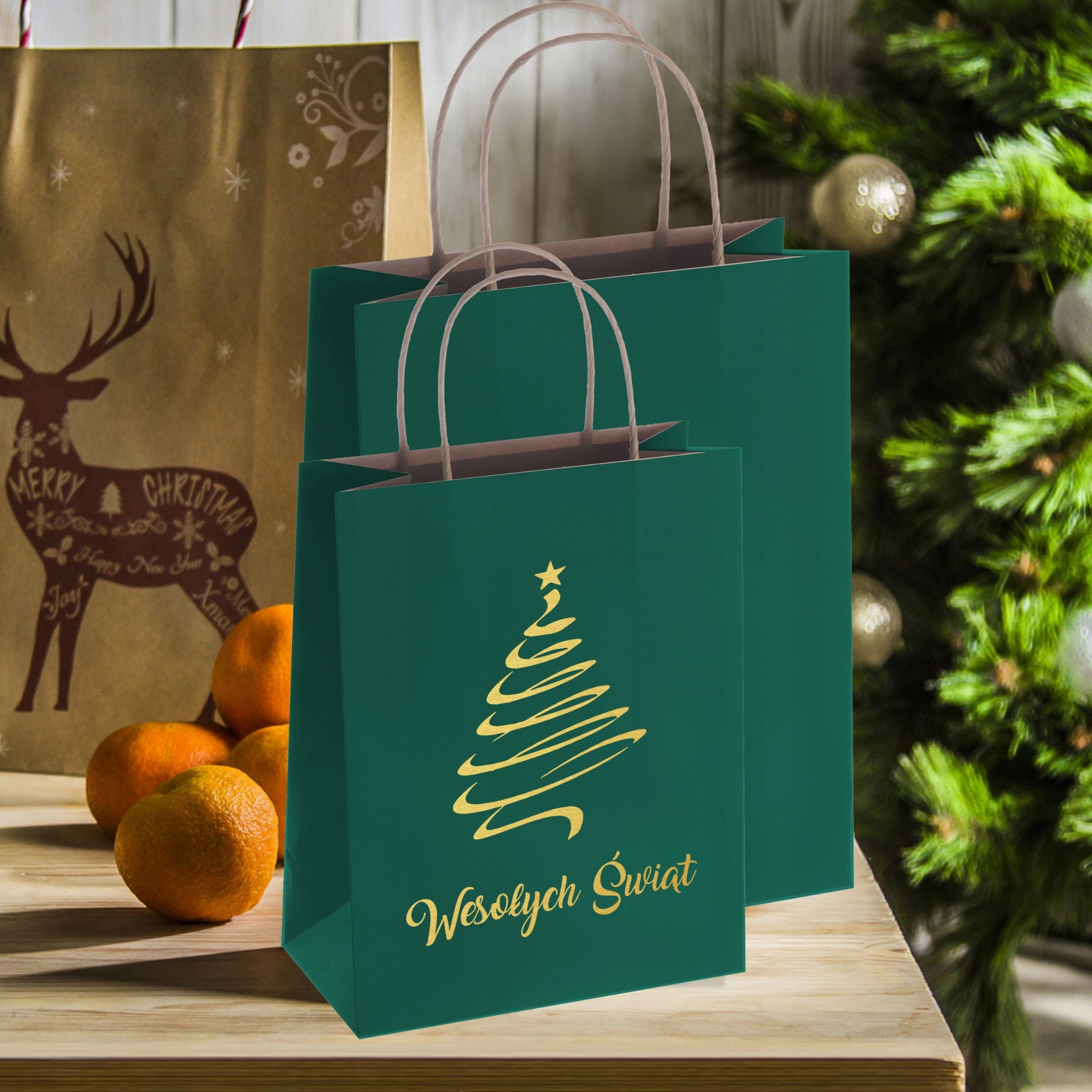 РОЖДЕСТВЕНСКАЯ ЗЕЛЕНАЯ БУМАЖНАЯ СУМКА А4 240/100/320 1 ШТ. РОЖДЕСТВЕНСКАЯ ЭКОСУМКА