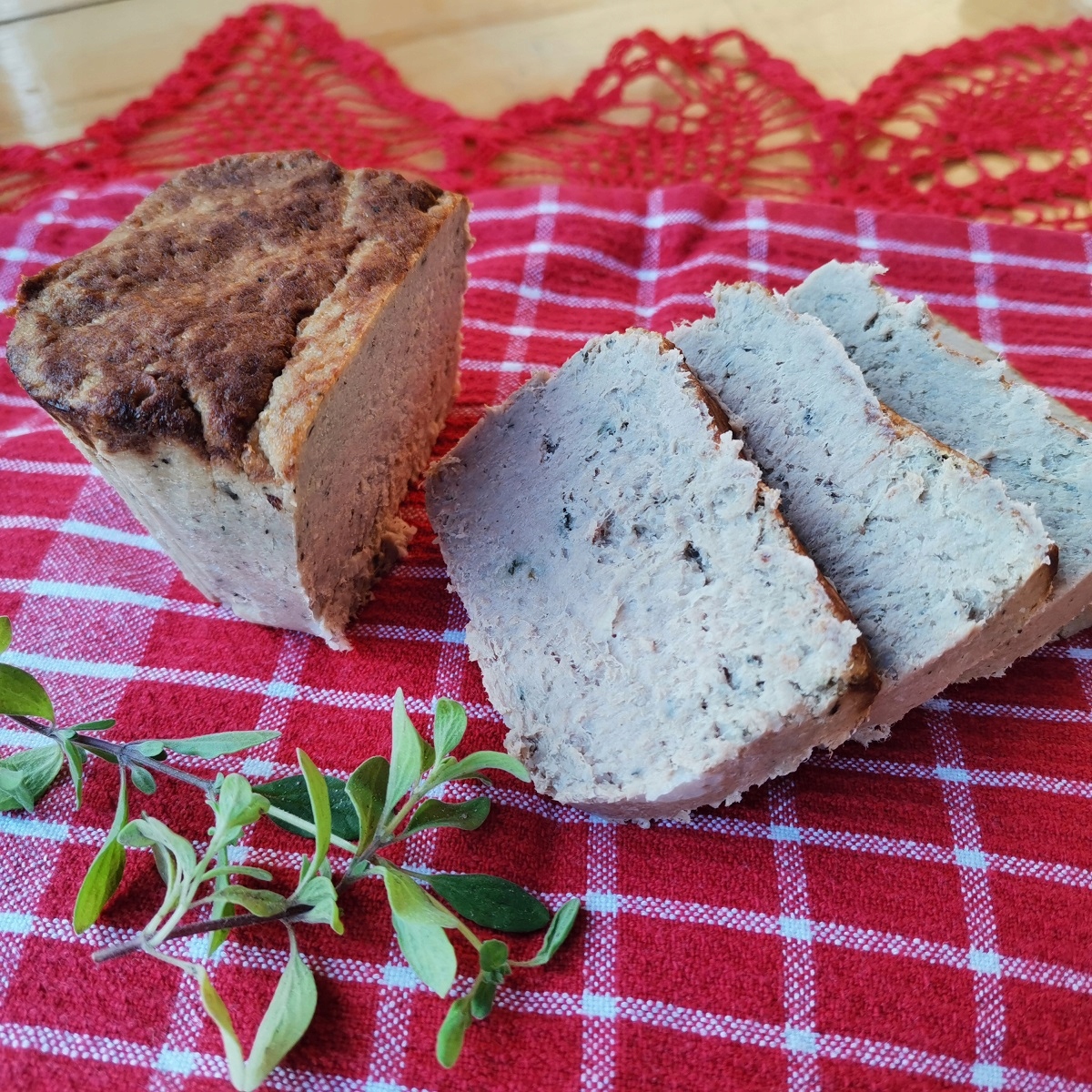 В составе нашего паштета вы найдете мясо, натуральные специи, панировочные сухари (без глютена) и каменную соль. Без консервантов, без глютена.