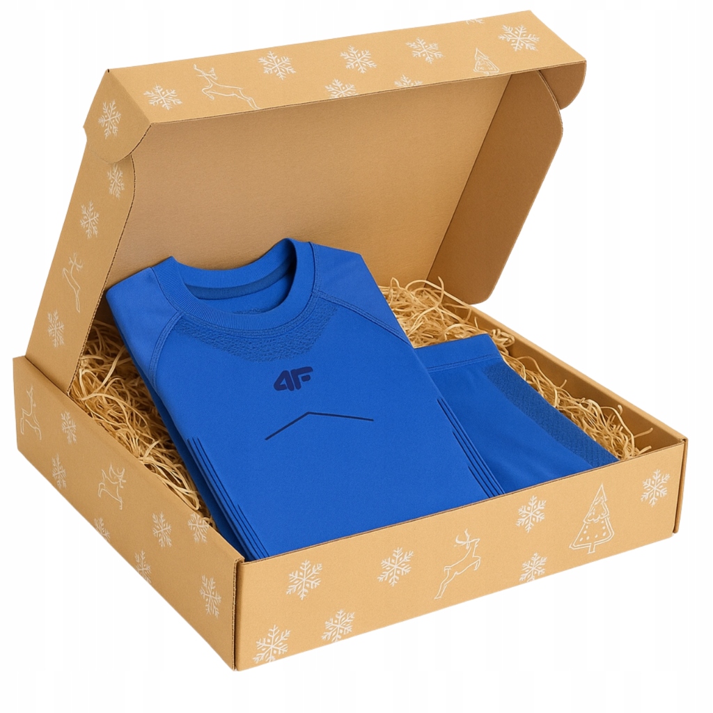 Бесшовное термоактивное белье 4F для мальчиков, упакованное в рождественскую коробку, готово в качестве подарка на зиму. Комплект обеспечивает тепло, комфорт и полную свободу движений.