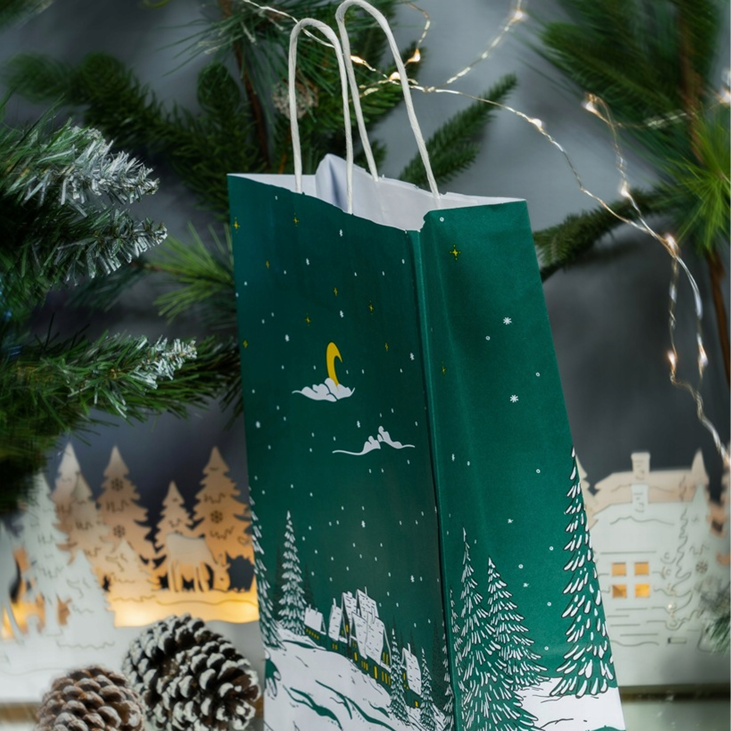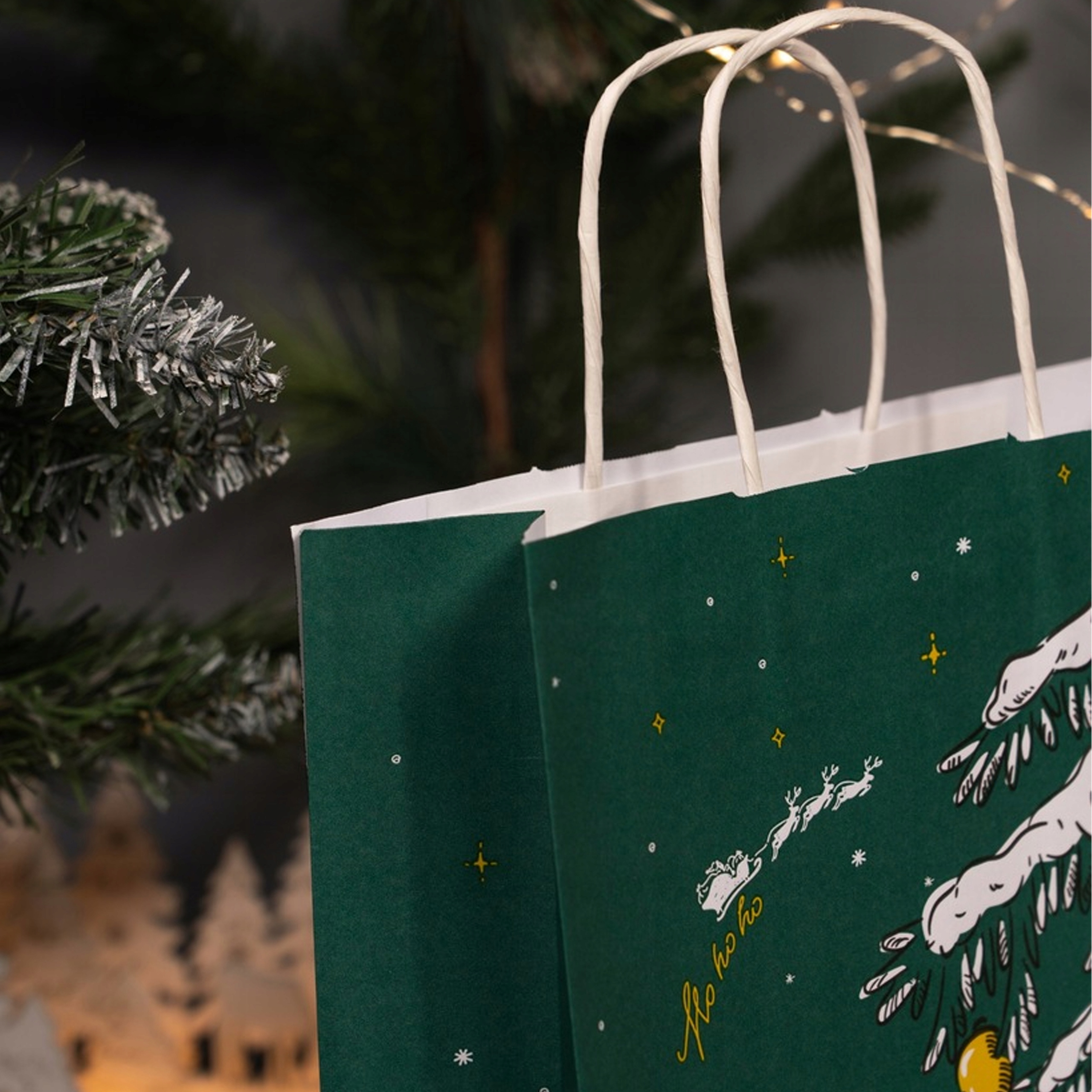 Бумажные пакеты идеально подходят для упаковки рождественских подарков, их также можно использовать как пакеты для покупок или как декоративный элемент во время праздничных вечеринок.