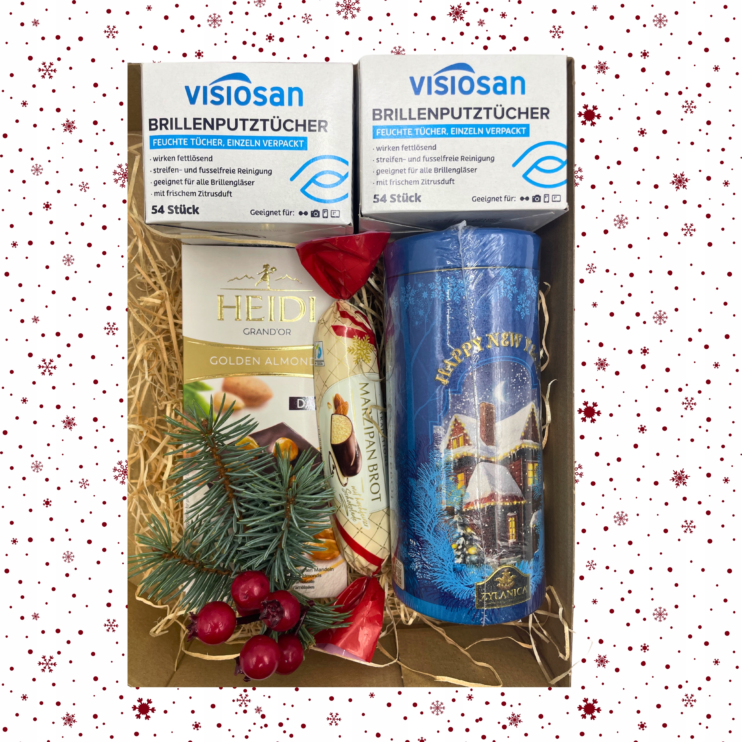 РІЗДВЯНИЙ ПОДАРУНКОВИЙ НАБІР, СЕРВЕТКИ ДЛЯ ОКАЛІВ, ЧАЙ, ЦУКОЖІ
